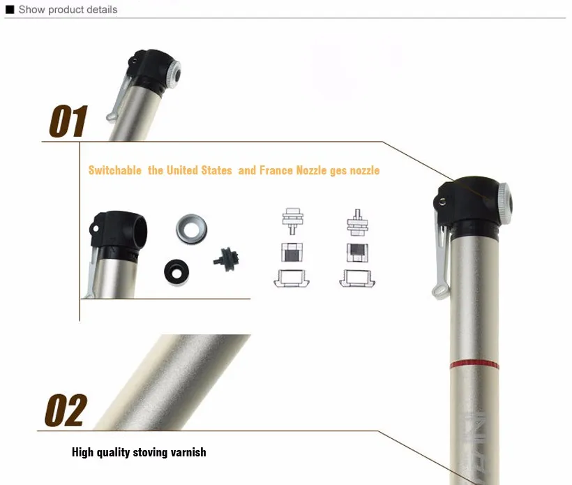 Особенности:Насос анодированная поверхность/CNC обработка/Прикрепленные скрытые выдвижные шланги сопла насоса, когда насос, чтобы избежать повреждения воздушного сопла шины