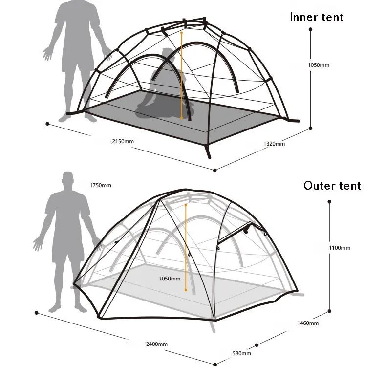 2 человека силиконовое покрытие двойной слой водонепроницаемый PU8000 Сверхлегкий тент (+ коврик)
