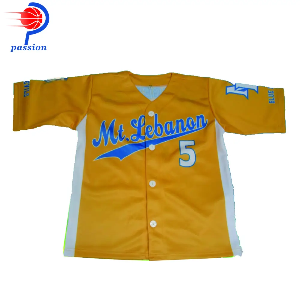 Изготовленный На Заказ сублимационный краситель Teamwear 100% полиэстер желтый бейсбольный трикотаж No.5