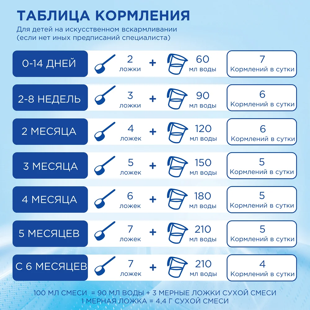 Лактоза, обезжиренное молоко, смесь растительных масел (пальмовое, рапсовое, кокосовое, подсолнечное, Mortierella alpina), мальтодекстрин, камедь бобов рожкового дерева, минеральные вещества, рыбий жир, L-цистеин, витаминный комплекс, эмульгатор соевый лецитин, таурин, холин, микроэлементы, инозит, нуклеотиды, L-карнитин.