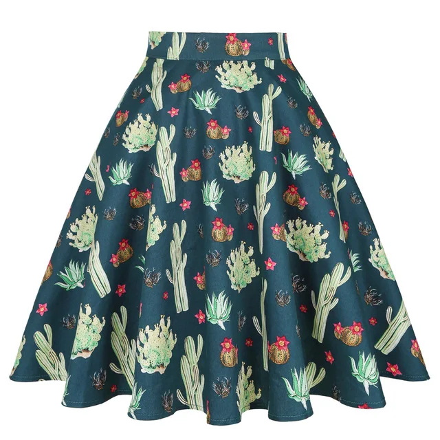 Женская юбка с цветочным принтом When We, плиссированная юбка средней длины в стиле ретро с принтом рокабилли, Повседневная зеленая юбка трапециевидной формы