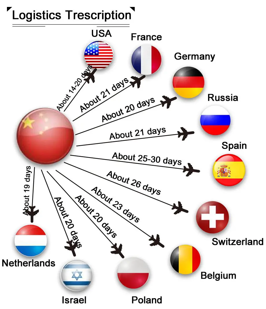 Если вы из следующих стран и хотите отправить бесплатные каналы, включая тарифы, пожалуйста, свяжитесь с нами. Кроме того, мы можем добавить небольшую стоимость перевозки. Мы можем отправить вам логистический канал, который включает тарифы. Срок составляет около 5-12 дней.