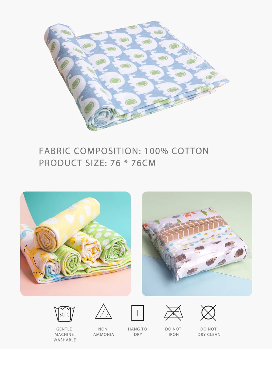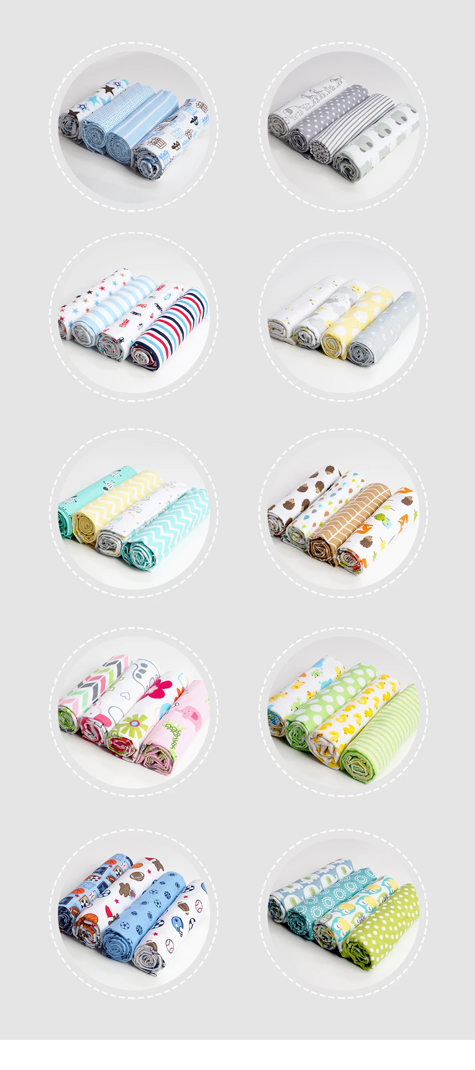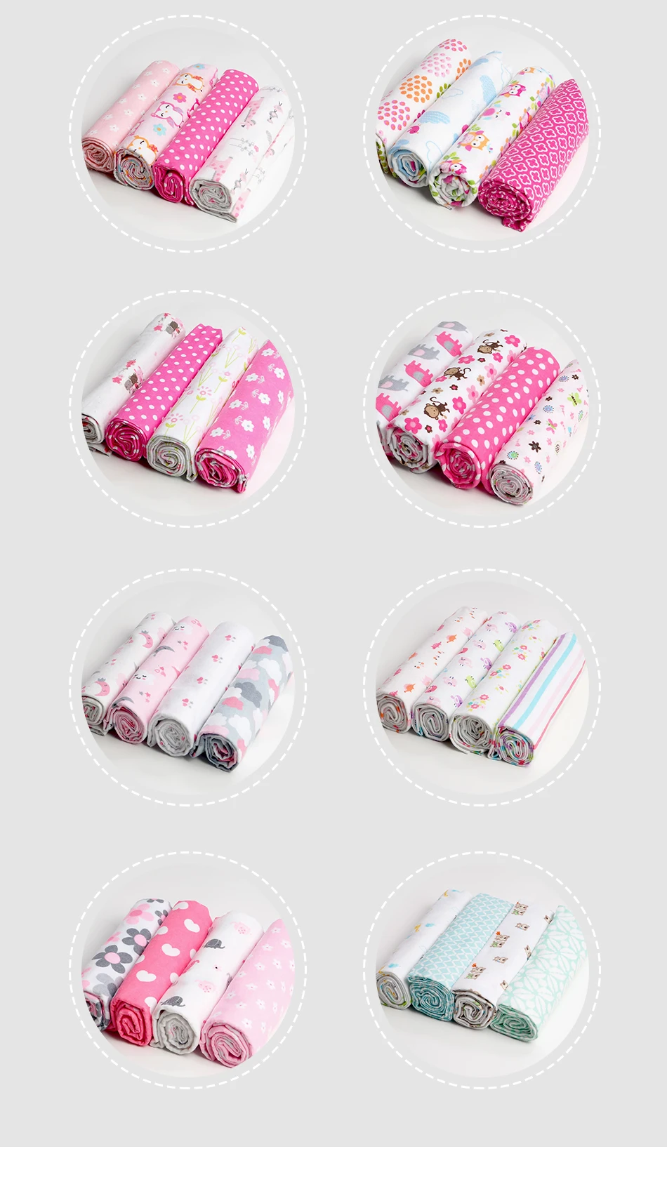 ②Этот комплект из четырех уютных хлопковых одеял имеет четыре разных рисунка. Мягкие одеяла идеально подходят для пеленания новорожденных или для использования в качестве тканевой ткани.