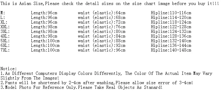 M: Длина: 96 см талия (эластичная):64 см обхват бедер: 110-116 см L: Длина: 96 см талия (эластичная):68 см обхват бедер: 114-120 см XL: Длина: 96 см талия (эластичная):72 см обхват бедер: 118-124 см XXL: длина: 98 см талия (эластичная):76 см обхват бедер: 122-128 см 3XL: длина: 98 см талия (эластичная):80 см обхват бедер: 124-132 см 4XL: длина: 98 см талия (эластичная):84 см обхват бедер: 128-136 см 5XL: длина: 100 см талия (эластичная):88 см обхват бедер: 132-140 см 6XL: длина: 100 см талия (эластичная):92 см обхват бедер: 136-144 см 7XL: длина: 100 см талия (эластичная):96 см обхват бедер: 140-148 см