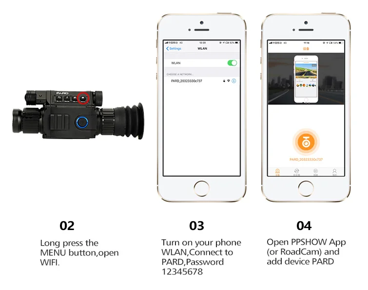 1) прицел с красной точкой 1 Вт 2) 5 Вт светодиодный инфракрасный ИК 3) Диапазон 200 м в полной темноте 4) Wifi/APP (Andriod & IOS) 5) 21 мм стандартное рельсовое крепление