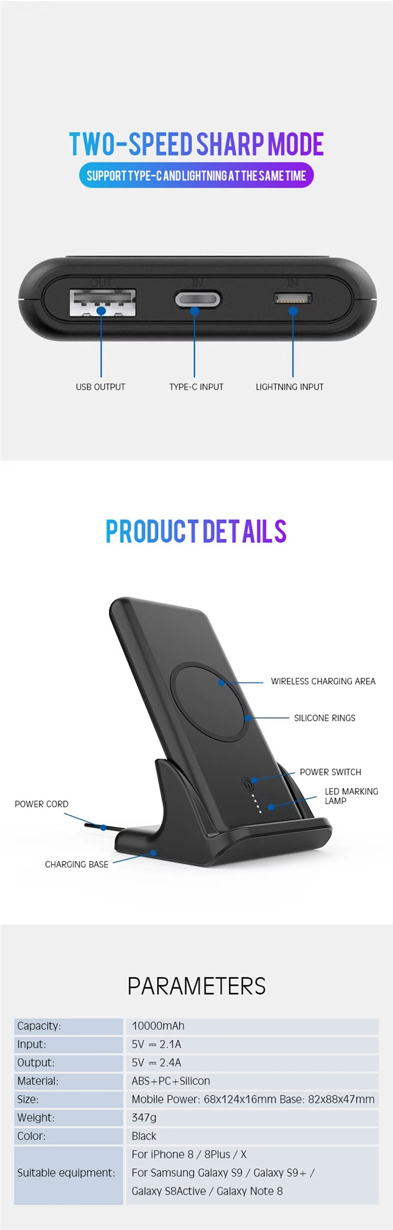 2. Он может обеспечить 5 Вт беспроводной зарядки и 10 Вт линии зарядки одновременно, два различных опыта зарядки.