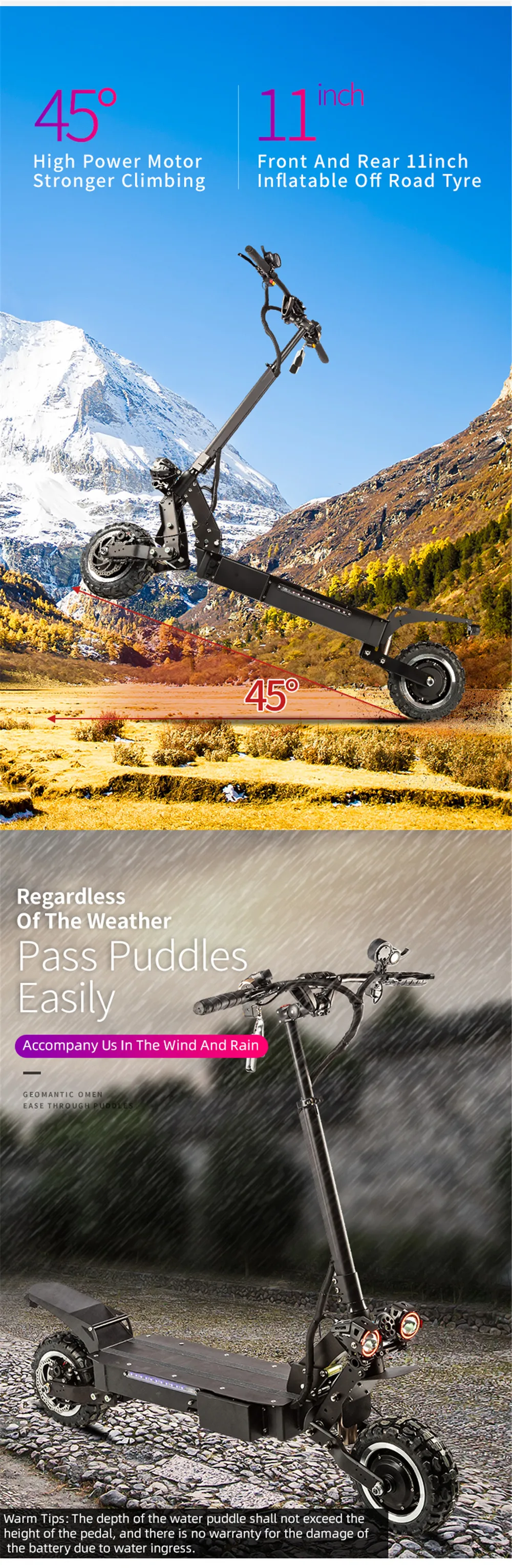 Мощный 60 в 6000 Вт Электрический скутер 95 км/ч с сиденьем 11 дюймов внедорожный двойной двигатель Halo Knigh EScooter складной взрослый мотоцикл
