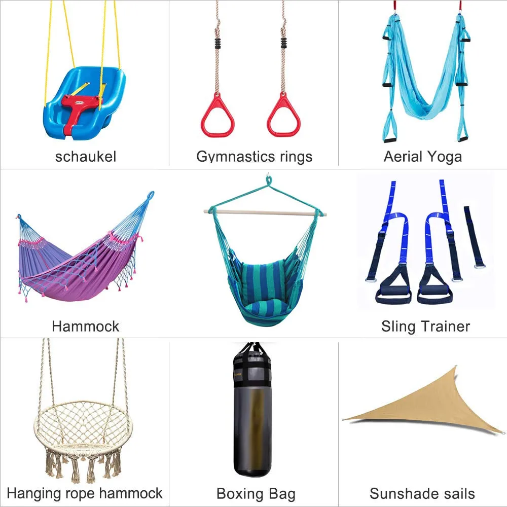 - Все качели, изготовленные из SUS304 пищевой нержавеющей стали 100% постоянной ржавчины, промышленные встроенные высококачественные Висячие вешалки, идеальный поворотный набор кронштейнов для всех продуктов качели в помещении или на открытом воздухе, включая крыльцо качели пружины потолок или деревянные крепления, гимнастические кольца и подвесные воздушные Йога инверсия трапеции качели сиденья