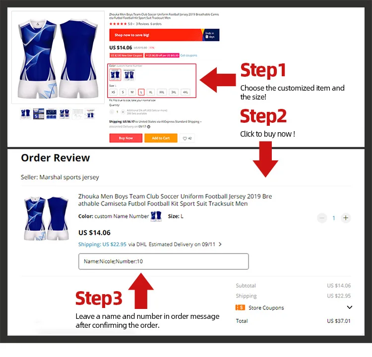 Please include the name and number of your choice in a note with your order.The specific operation is as follows, If no note or message is left, we will send a jersey with same as the picture show!