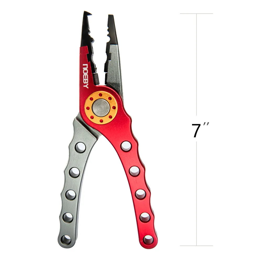Рыболовные плоскогубцы NOEBY из алюминиевого сплава, съемник крючков, резак с разделенными кольцами с футляром и тросом, портативный многофункциональный рыболовный инструмент