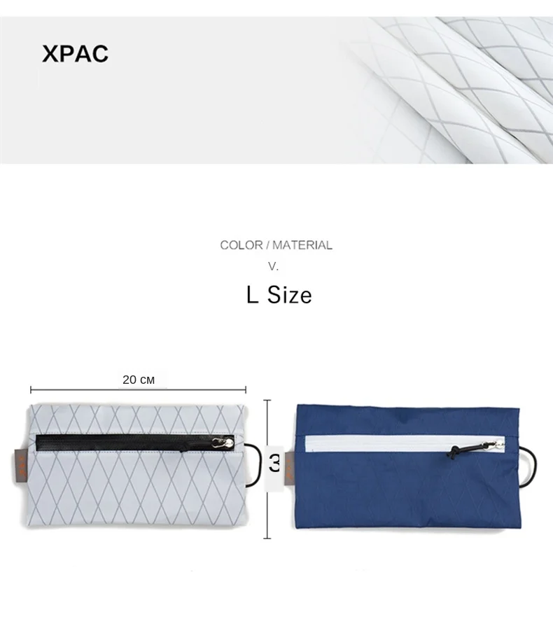 Ткань XPAC: это слой черного полиэфирного армирования под названием x-ply, который ламинирован внутри наружной нейлоновой ткани, задняя часть изготовлена из прозрачной водонепроницаемой пленки для домашних животных или нейлоновой ткани и полиэфирной ткани в соответствии с типом, прочнее и жестче, чем обычные ткани.