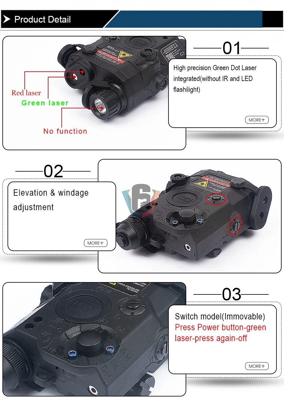Uniquement laser vert et rouge , PAS de lumiere blanche, IR!