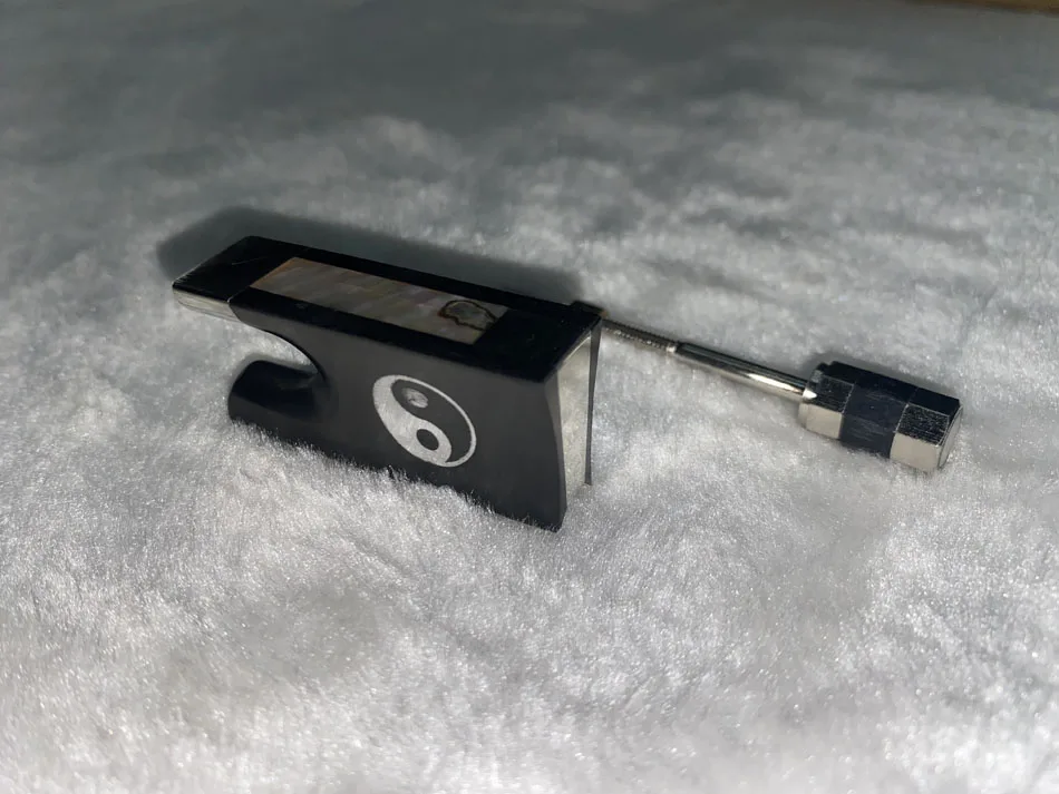 Описание: -Смычок для скрипки из черного дерева лягушка для скрипки Лук части аксессуары. -Предназначен для 4/4 скрипок. -Изготовлен из черного и никелевого серебра. -Красивые Тай Чи, жемчужные горки. -Отличная замена для вашей старой, грязной или поврежденной лягушки. Таблица размеров: Размер: прибл. 45x13x20мм Длина винта: прибл. 60 мм Посылка включает в себя: 1 x смычок для скрипки из черного дерева лягушка 1X винт