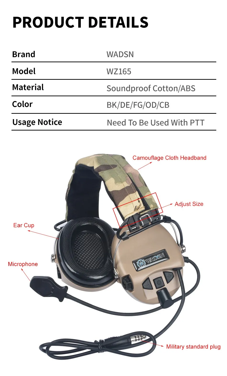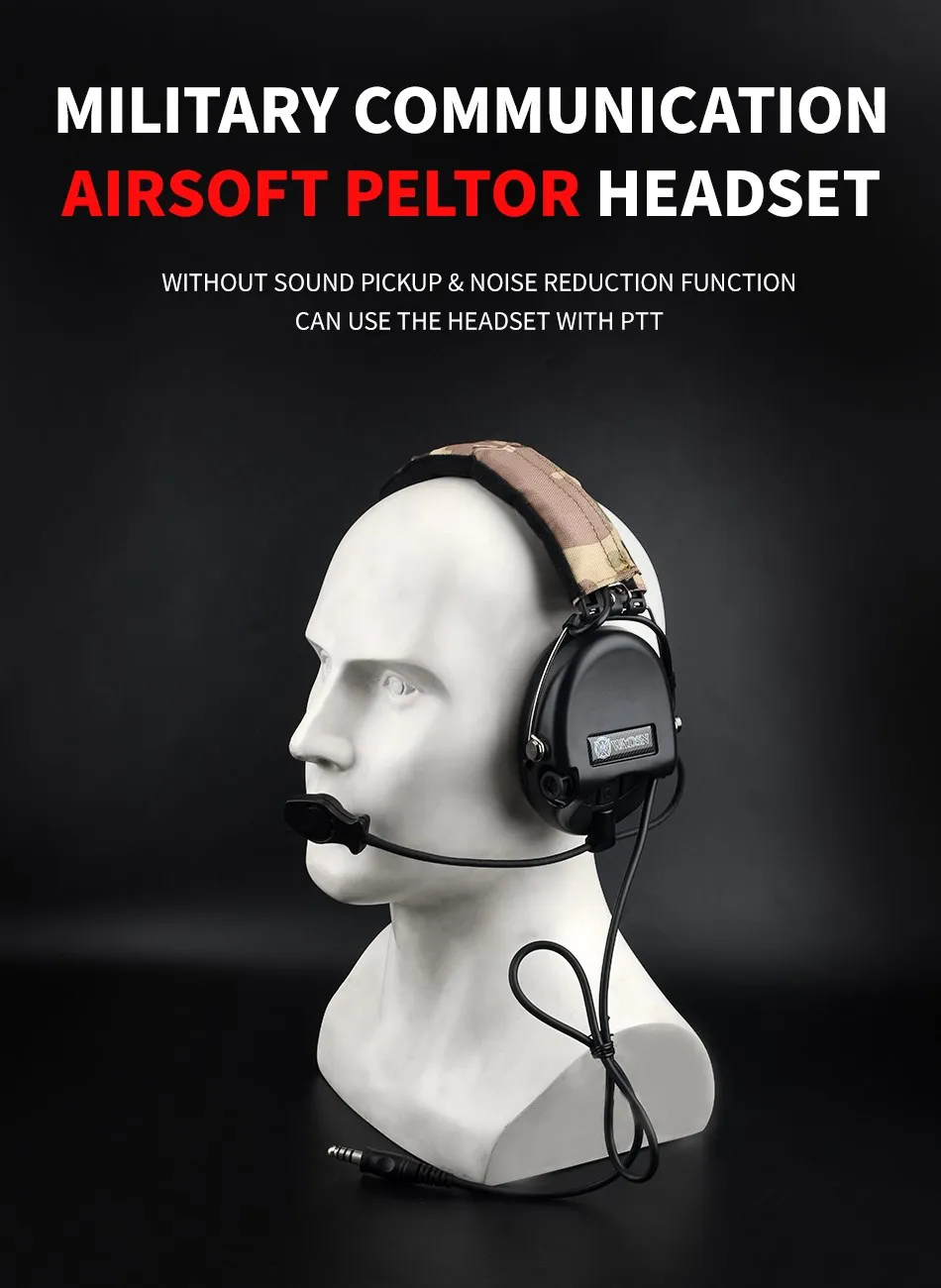 WADSN Тактический Peltor Наушники связь Версия съемки гарнитура с камуфляжной повязкой на головуБез снижения уровня шума