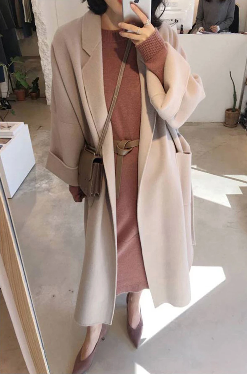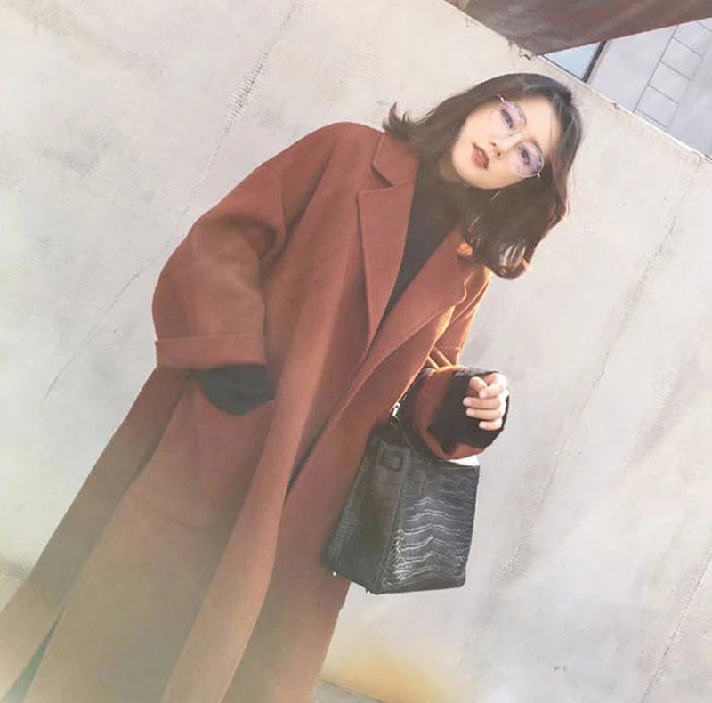 [Материал]: 100% полиэстер Мягкость ткани: умеренная Плотность умеренный Эластичность ткани: умеренная Тонкий индекс: умеренный [Дизайн]: Повседневное тонкое шерстяное пальто [Сезон]: осень-зима