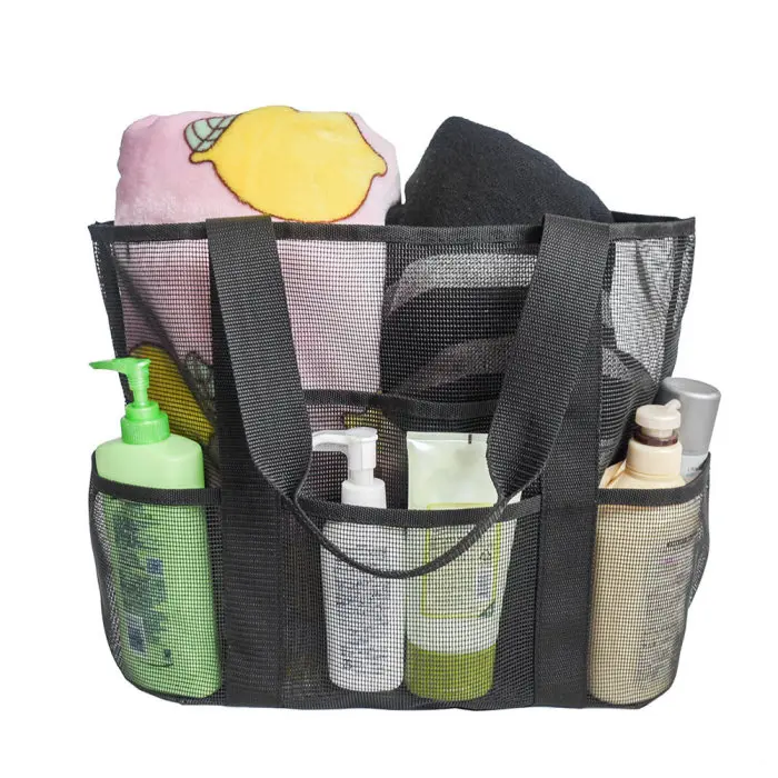 Многоразовый сетчатый мешок. Место для полотенец, бутылок для воды, очков, игрушек, солнцезащитных блоков и почти все, что вам нужно для дня на пляже или в бассейне.