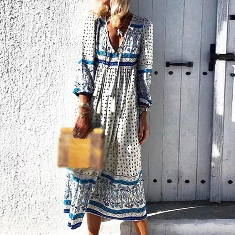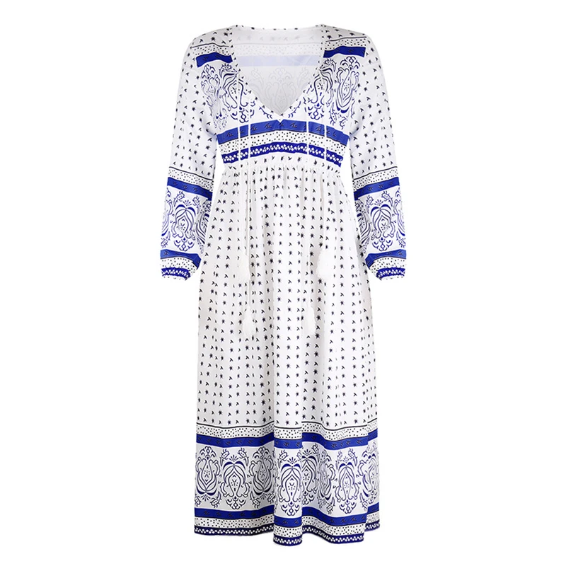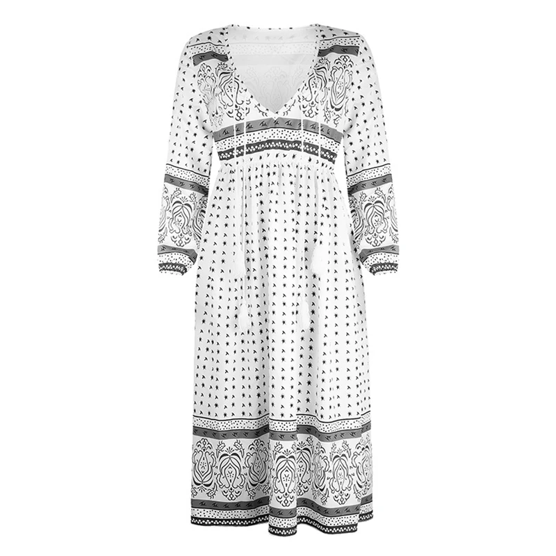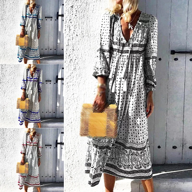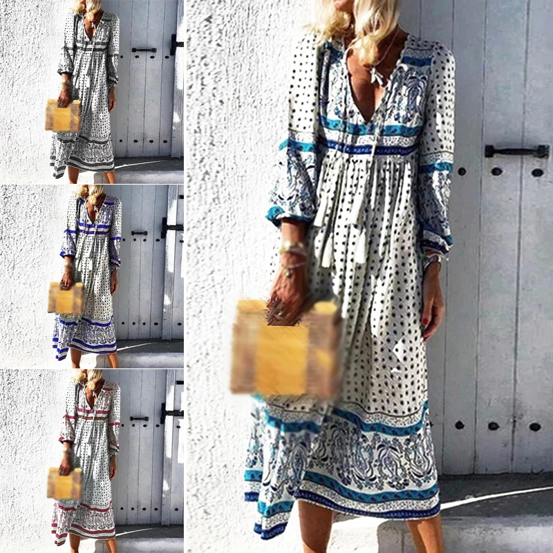 * Описание товара:Для женщин Boho сексуальное нижнее белье с глубоким v-образным вырезом сексуальное платье Повседневное свободные Ленточки печатных пляжный костюм с длинным рукавом вечерние плюс Размеры
