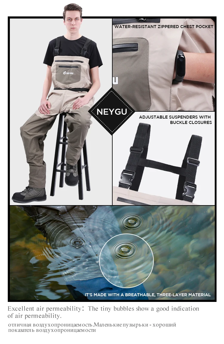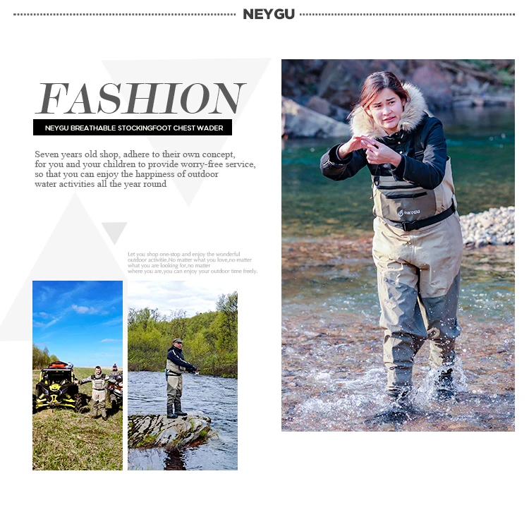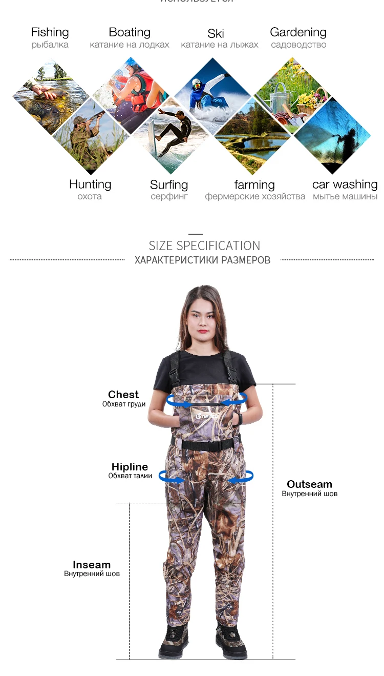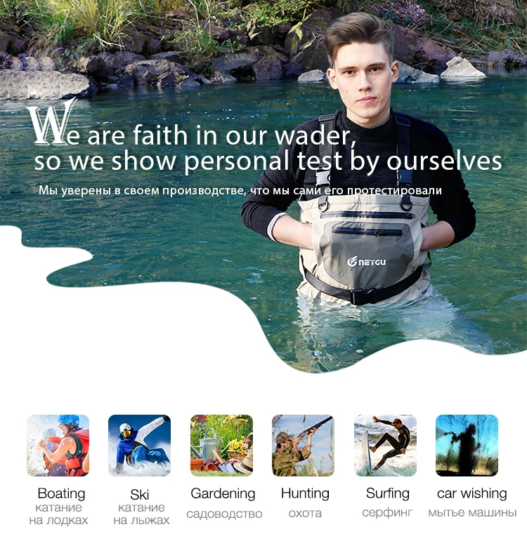 5. Многофункциональная грудь Вейдер: Этот Вейдер подходит для большинства видов активного отдыха, таких как рыбалка, дождь играть, зажимать, кататься на лыжах, кататься на лодках, пляж расчесывание, играть в грязи, ATV, мотокросса.