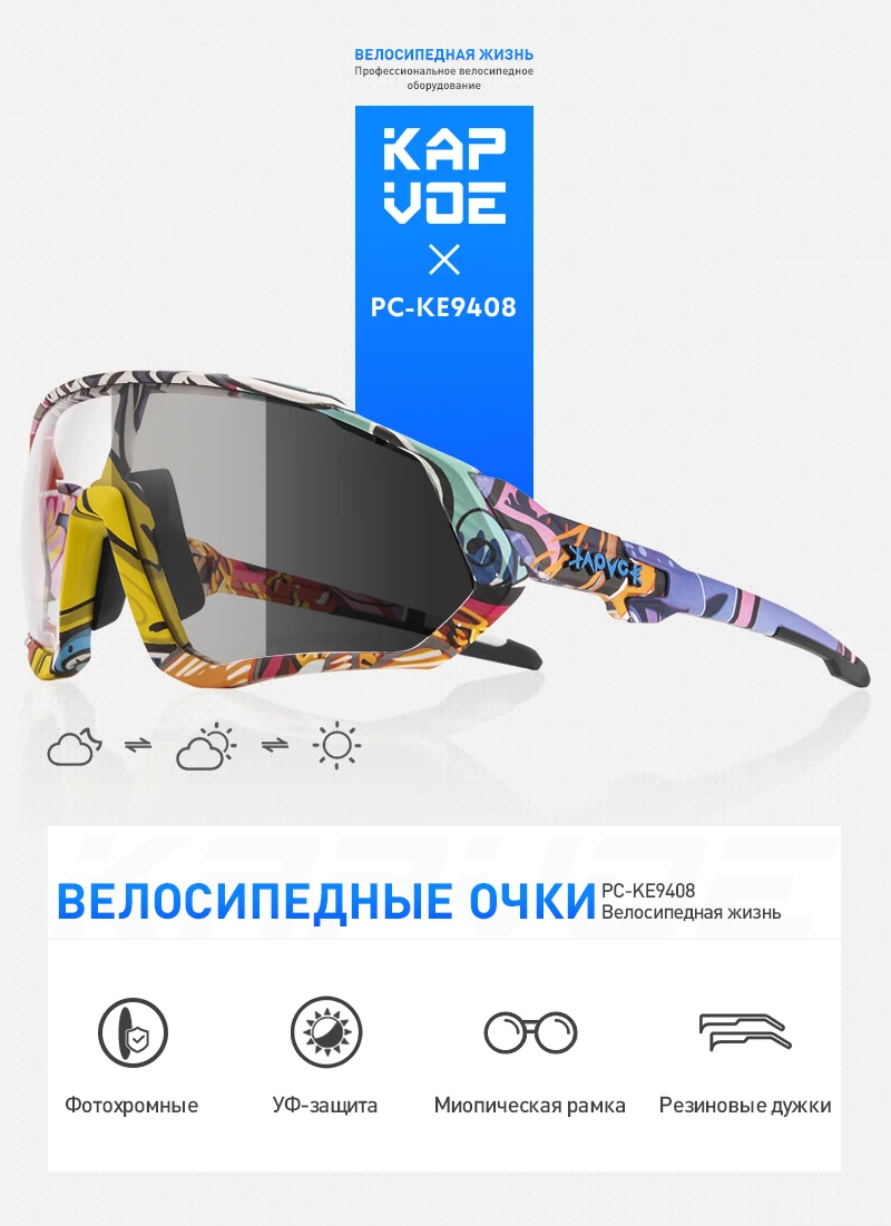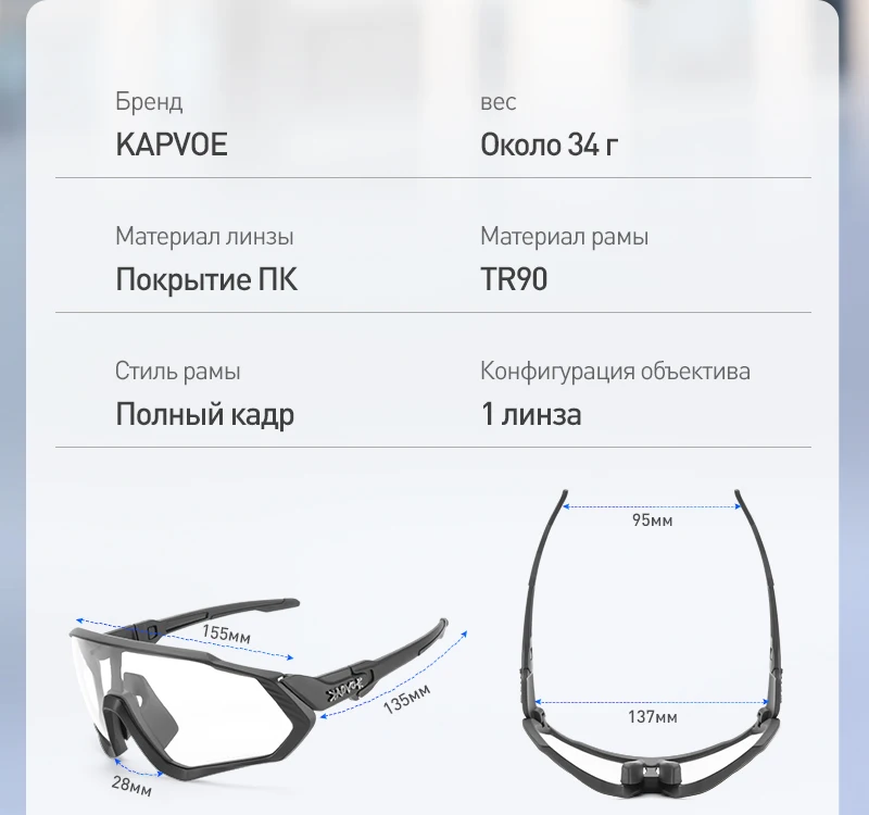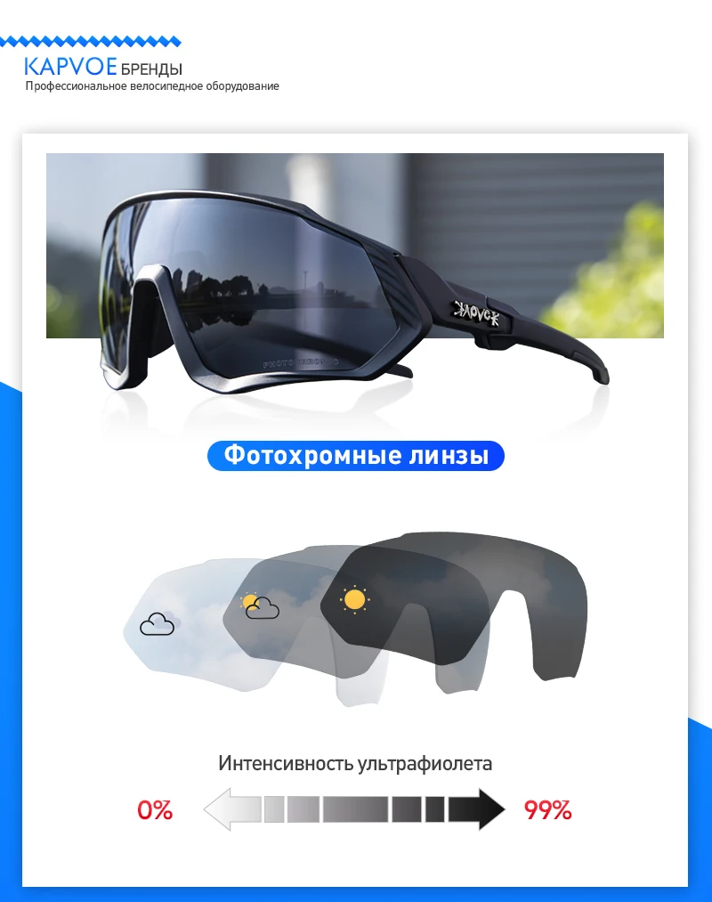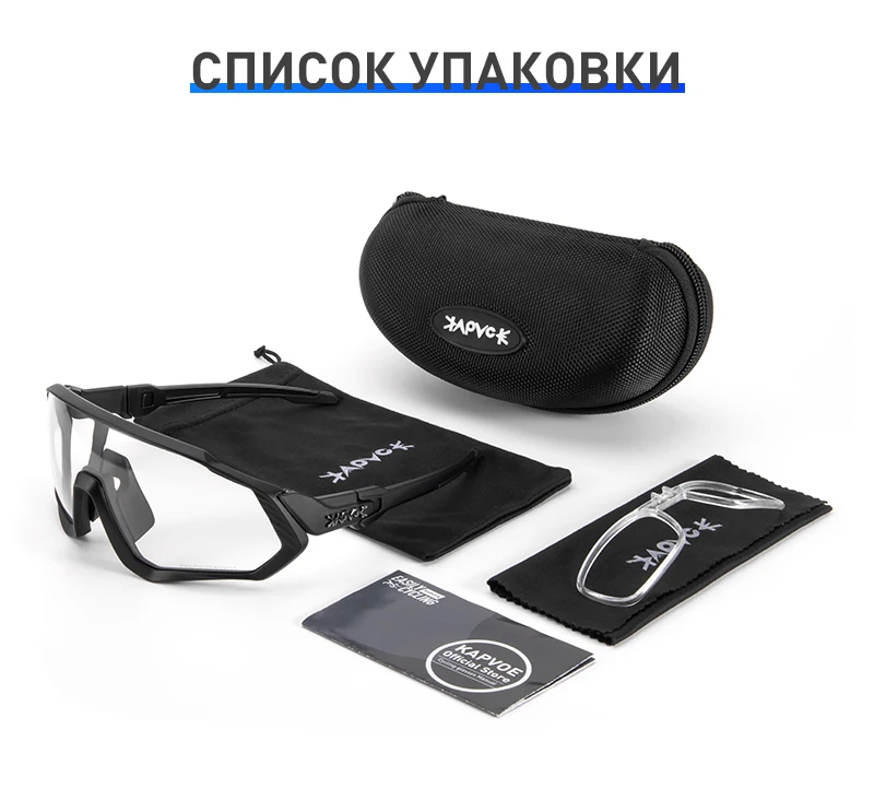 1. 【Технология оправы】 Оправа солнцезащитных очков легкая, весит всего 34 г, термостойкая и устойчивая к ультрафиолетовому излучению. С нескользящими резиновыми подушечками для носа и ножками, подходящими для идеального лица. Рама из материала TR90 мягкая, прочная, не хрупкая, очень гибкая и сверхлегкая. Встроенная оправа для близорукости и настраиваемые линзы для близорукости также подходят для людей, страдающих близорукостью.2. 【Технология линз】 Фотохромные солнцезащитные очки: линза из поликарбоната, линза будет изменяться в зависимости от интенсивности ультрафиолетового света, чем сильнее ультрафиолет, тем темнее цвет линзы. Попав в комнату, линза вернется в прозрачное состояние. Объектив имеет устойчивое к царапинам покрытие, которое непросто поцарапать.3. 【Прозрачные, сверхлегкие, стильные, прочные】 Эти солнцезащитные очки могут блокировать 100% вредных лучей UVA и UVB, поэтому вы можете заниматься спортом на открытом воздухе (например, гольфом, ездой на велосипеде, вождением, рыбалкой, лыжным спортом, бегом, теннисом, гонками и тд)) Может хорошо защитить глаза. Унисекс.4. 【Больше стилей и супер аксессуаров】 -kapvoe стремится производить высокопроизводительные высококачественные продукты. Для удовлетворения ваших индивидуальных потребностей.❤К аксессуарам для очков относятся сумка из этиленвинилацетата, сумка для очков, инструкция, салфетка для чистки очков, оправа для близорукости, оправа TR90 с фотохромной линзой.