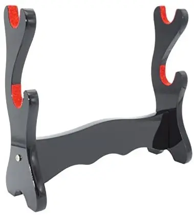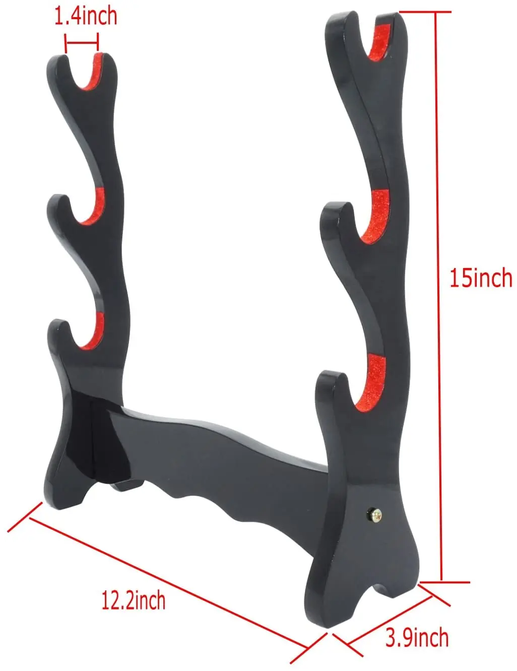 Черная лаковая отделка, которая делает этот дисплей красивым с вашими самурайскими мечами, такими как катана. Наряду с красными бархатными подлокотниками, этот кронштейн может защитить меч от царапин. Материал: дерево; Качество сделано, легко собрать. 3 Слои Размеры: 12,2 см в ширину x 15 дюймов в высоту. 2 размера слоя: 31*28 см/12,2*11 дюймов (Д * В);