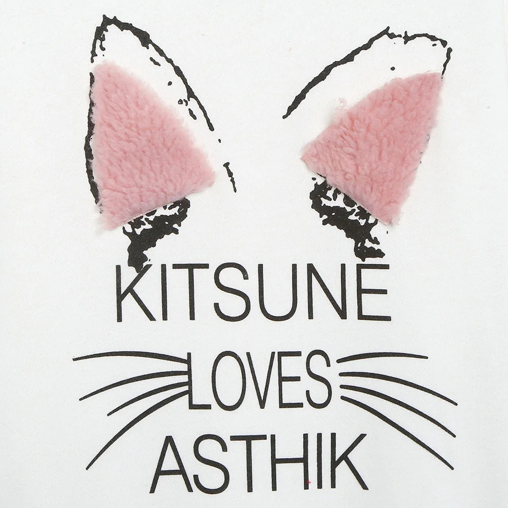 -Рисунок кошки и принт с буквами делают пуловер особенным и стильным