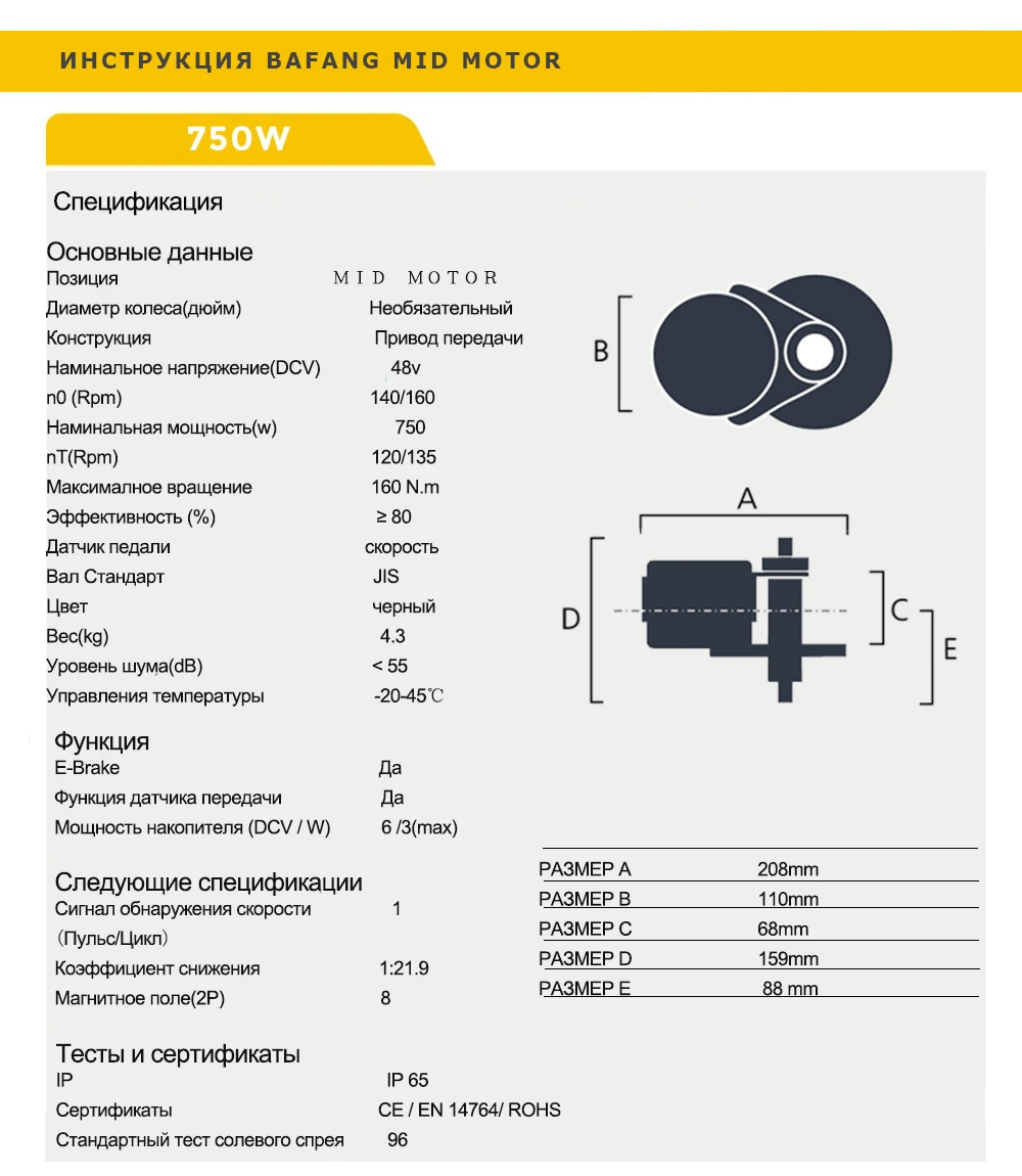 BBS02B 750W BB размер 68 мм, подходит для велосипеда 68-73 мм.