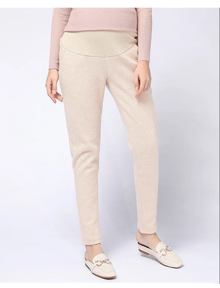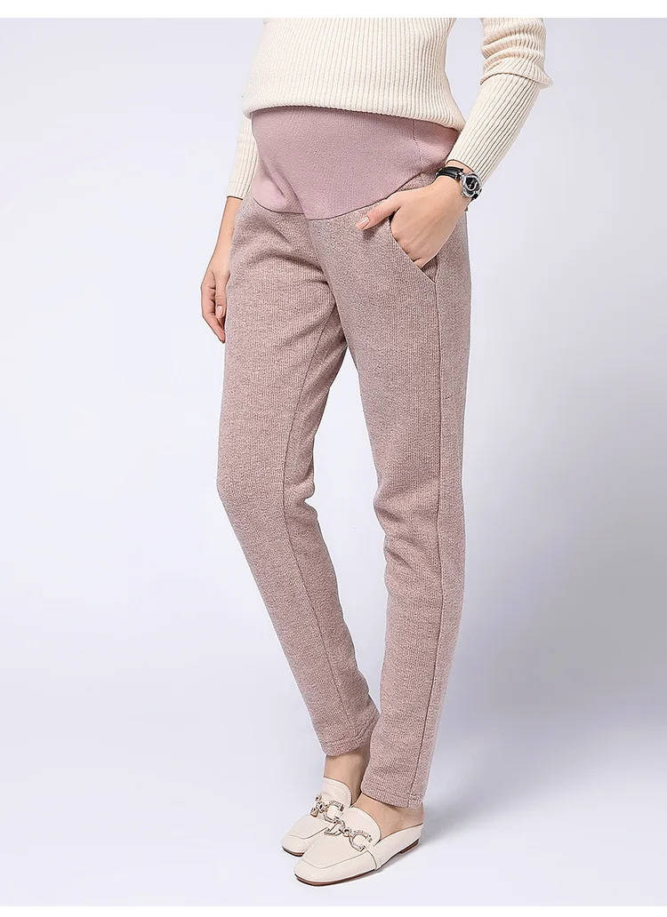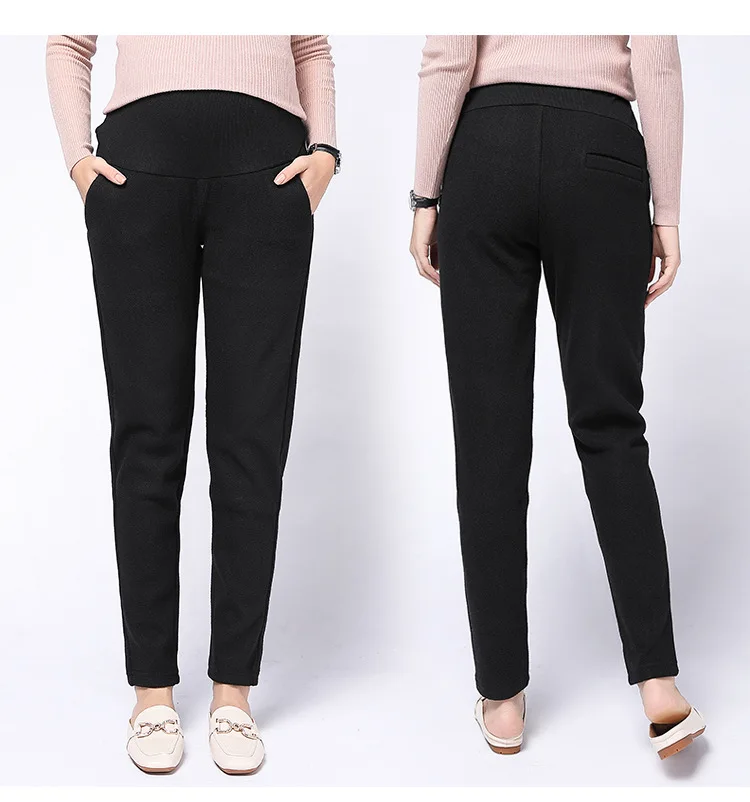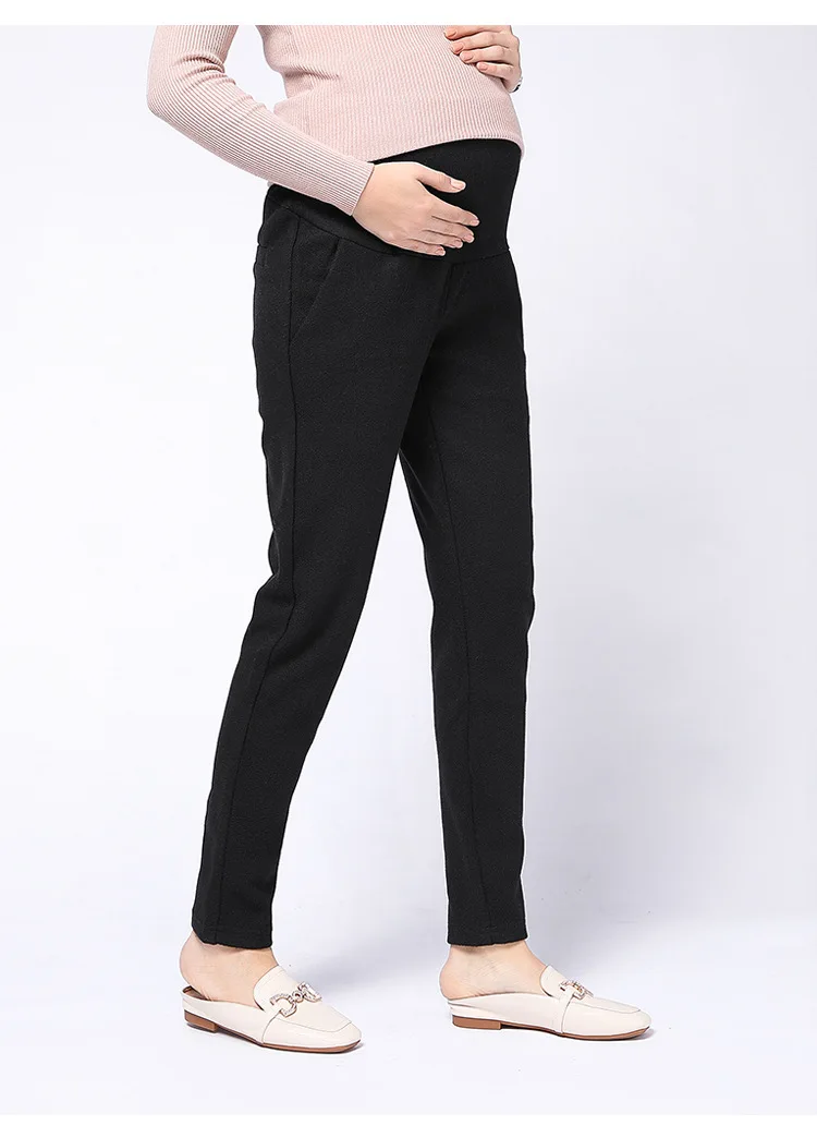 Winter thickening woolen pregnancy pants high waist stomach lift fashion feet pregnant women pants winter casual maternity clothes