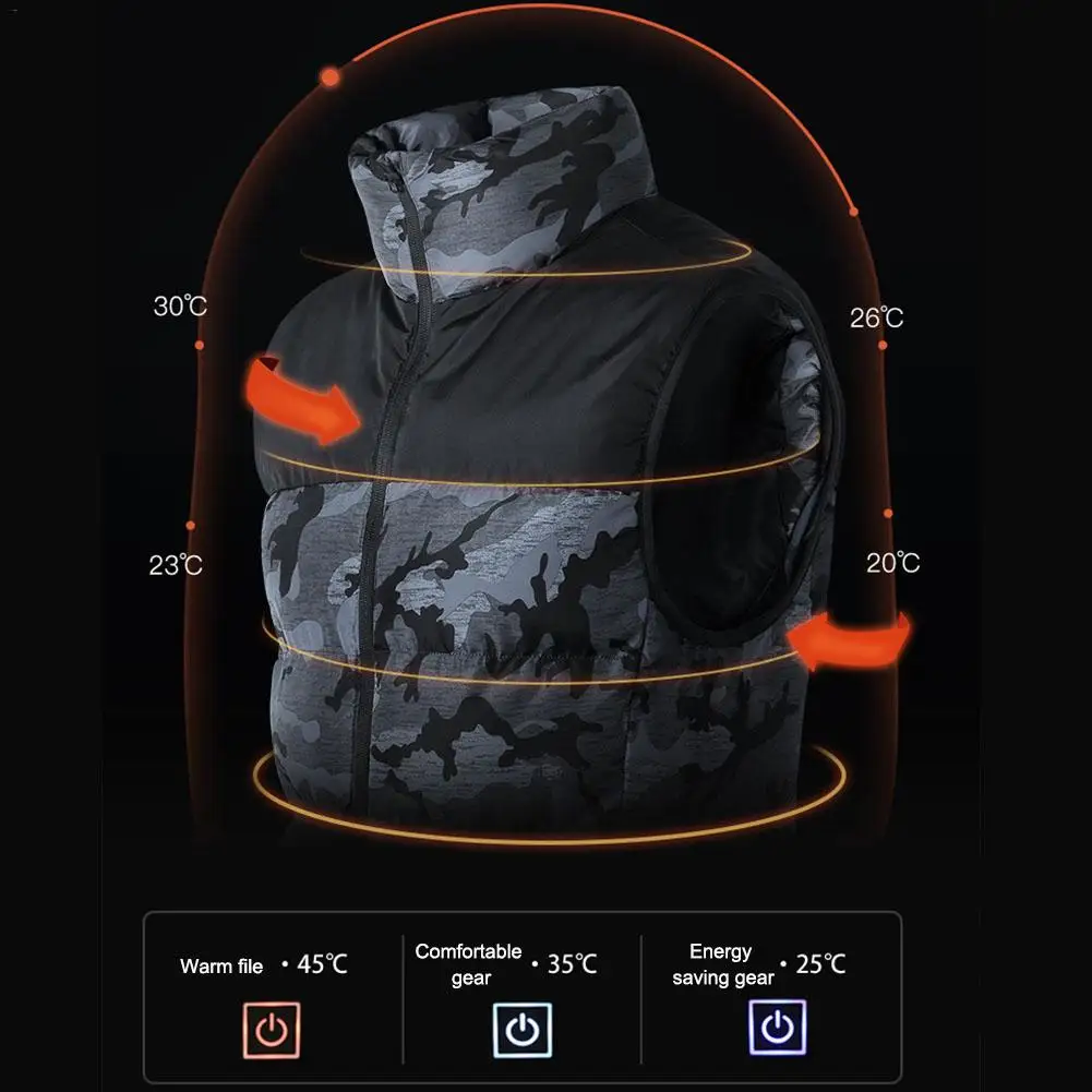 1. 2 горячих зоны: обогрев спины и шеи. Нагревательная проволока из полиэфирного волокна обеспечивает Быстрое нагревание. Теплый и удобный жилет.