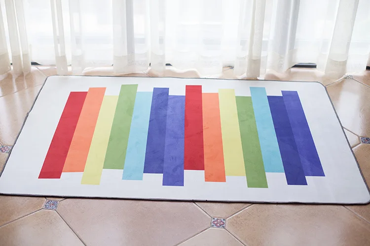 Description: Features: 1.Color bar learning floor mat 2.Children's floor MATS, tent MATS. Household MAT 3.Children's room decoration 4.Sports Specification: Material: Polyester fibre (polyester) Size: 1*1.5m