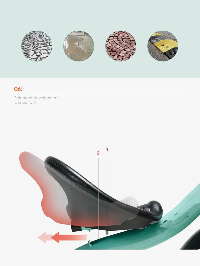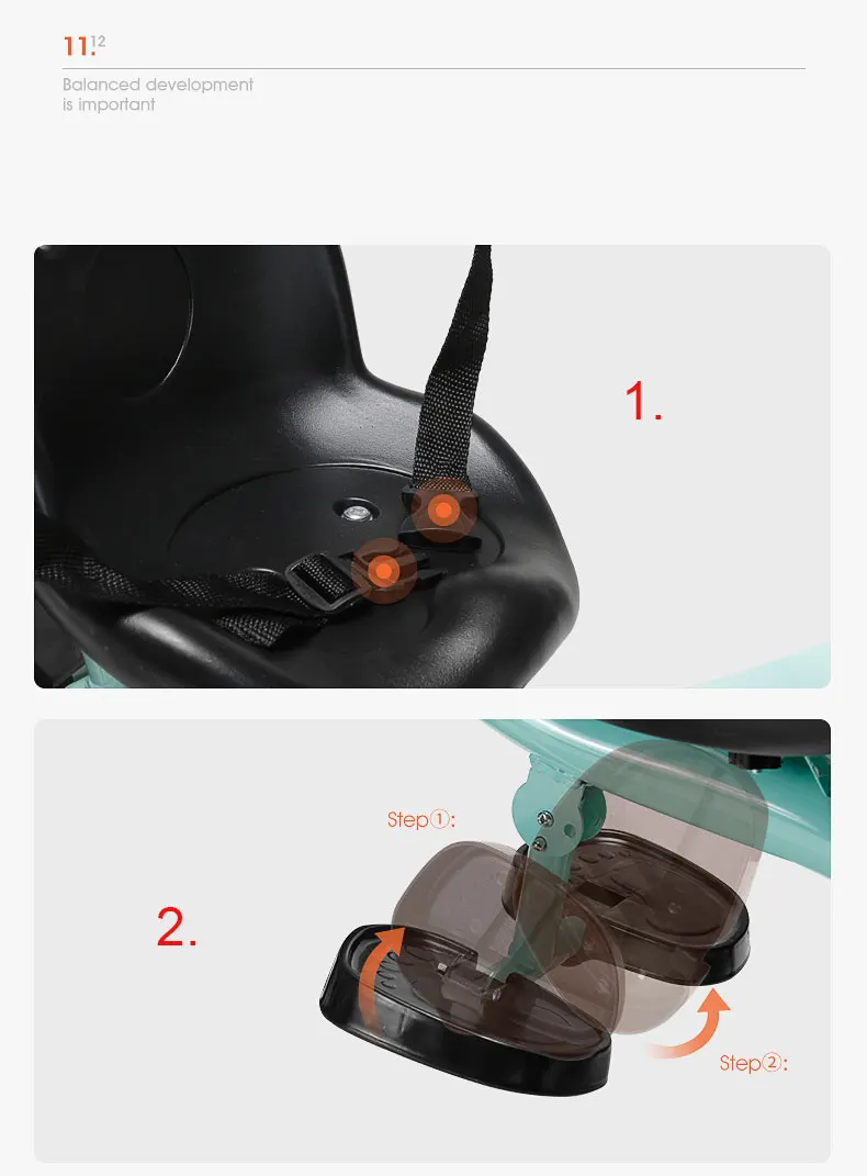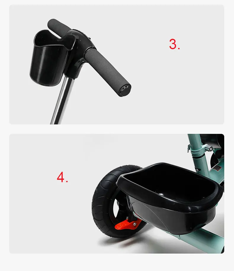 1. Портативный двухточечный ремень безопасности Не стесняйтесь регулировать длину 2. Складывающаяся опора для ног Легко переносить и хранить 3. Нескользящая ручка Более удобно лежит в руке 4. Задняя корзина Увеличение В корзину