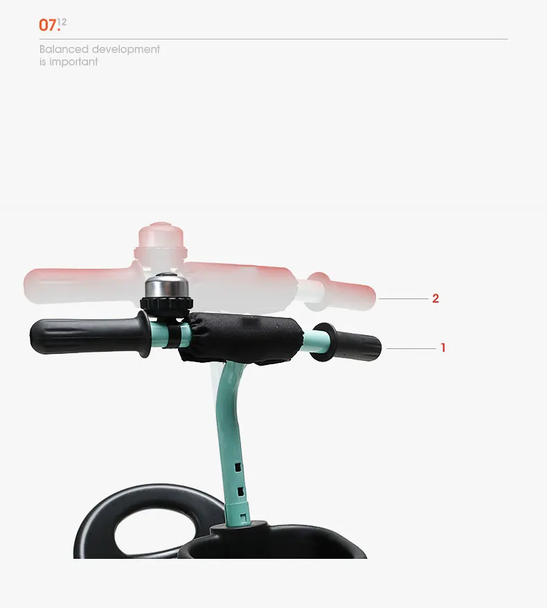07. Две регулировки руля адаптируются к различным высотам ребенка