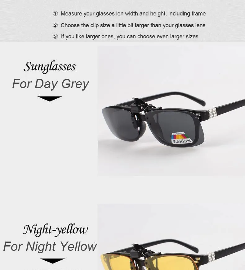 Поляризованные солнцезащитные очки на клипсе для дня и ночи анти-УФ, для вождения, для верховой езды, для рыбалки, солнцезащитные очки, зажимы для близоруких людей, унисекс