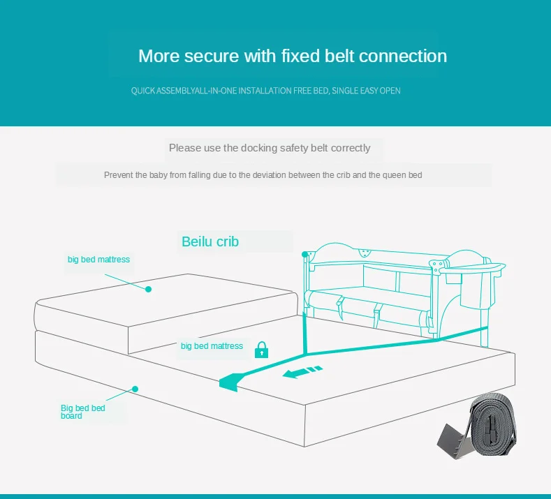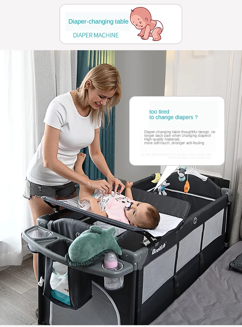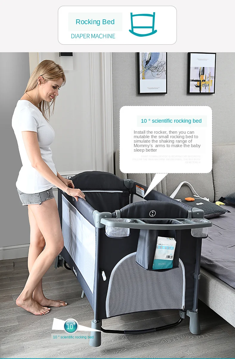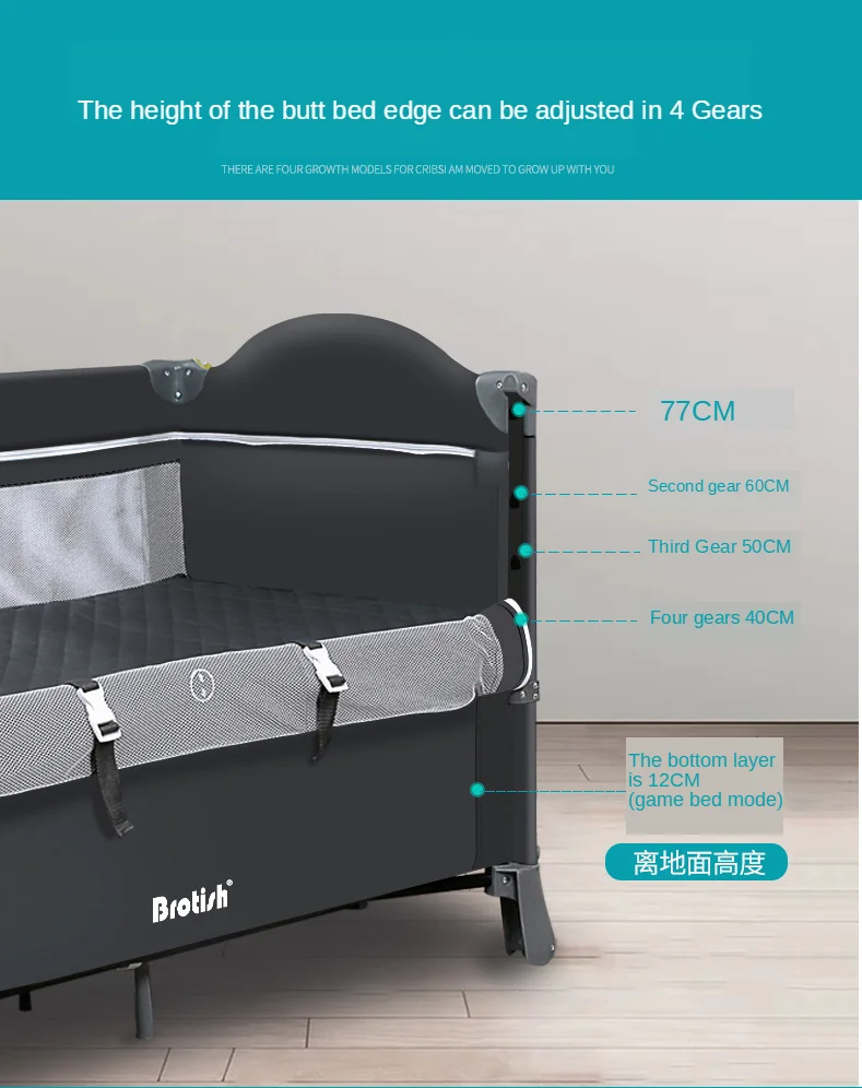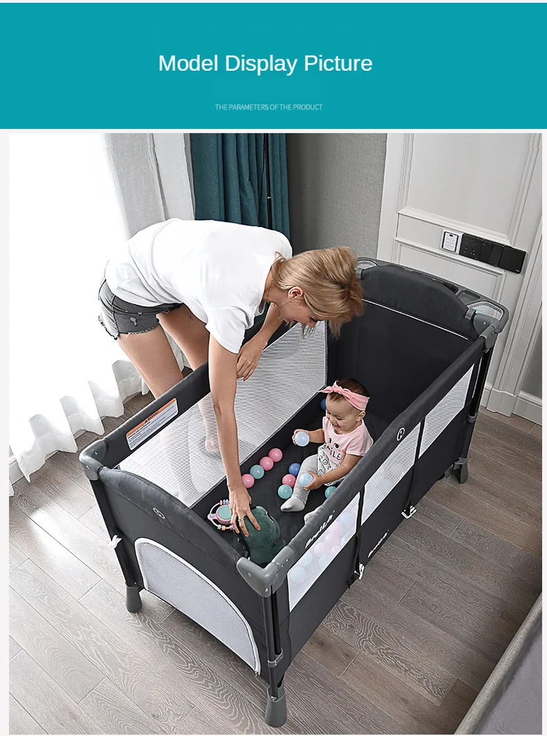 Описание продукта: 1. Не красит вдали от формальдегида, можно сложить, легко носить с собой. 2. Это может быть кроватка или игровая кровать. 3. Детская кровать сконструирована со столом для пеленок, что делает ее более простой и легкий для мам, без сгибания. 4. В нижней части можно подвесить над кроваткой может быть превратился в шейкер. 5. Высоту края кровати можно регулировать с помощью четырех передач. 6. Детская кровать имеет фиксированный пояс, который может быть более стабильным, когда соединен с большой кроватью. 7. В нижней части можно подвесить над кроваткой оснащен ролик для легкого движения. 8. Кроватка имеет два слоя, первый слой подшипника 80 кг, второй слой подшипника 20 кг. 9. Размер детской кровати в разложенном виде: 120*70*76 см, Размер в сложенном виде: 82*23*23 см.