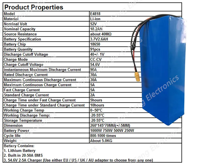 48 в 1000 Вт 2000 Вт аккумулятор 48 В 18АЧ Аккумулятор для электрического велосипеда 48 В литий-ионный аккумулятор с 50А BMS и 54,6 в 2A зарядным устройством.