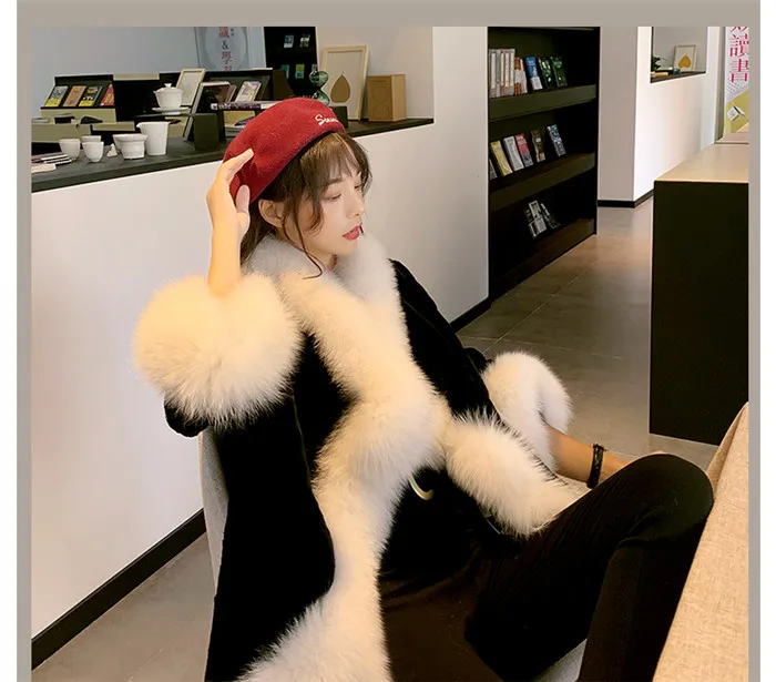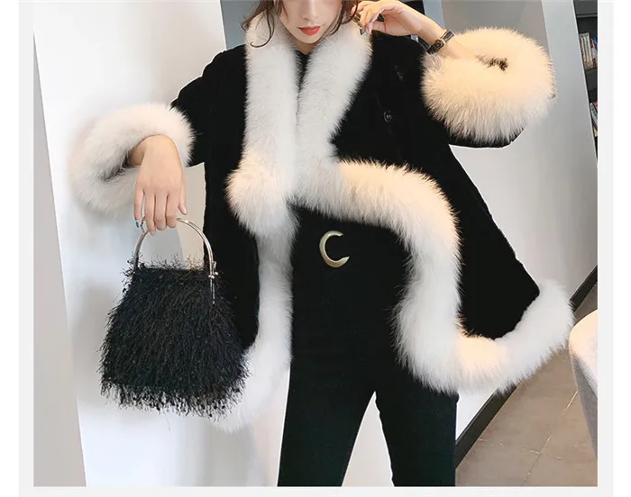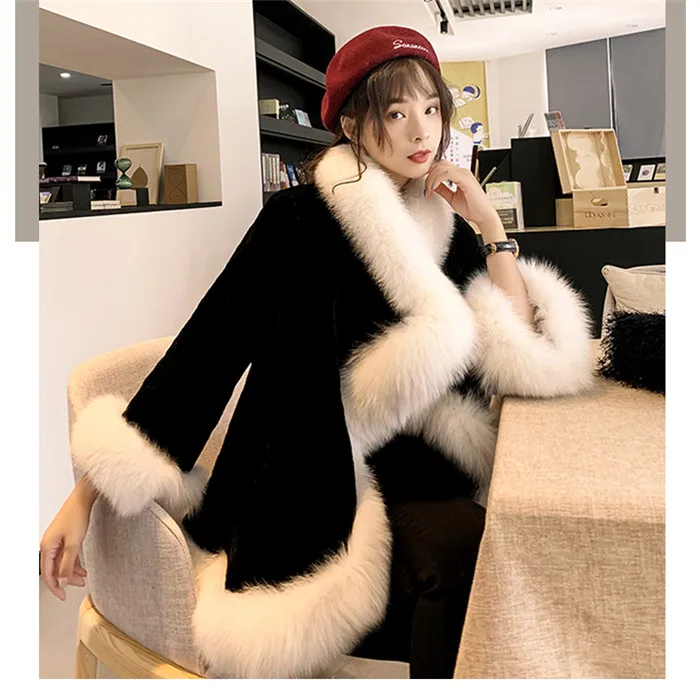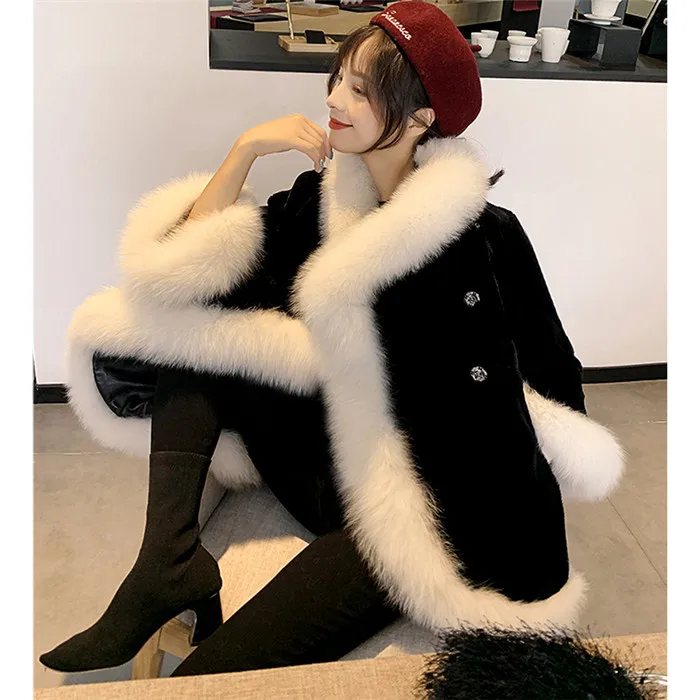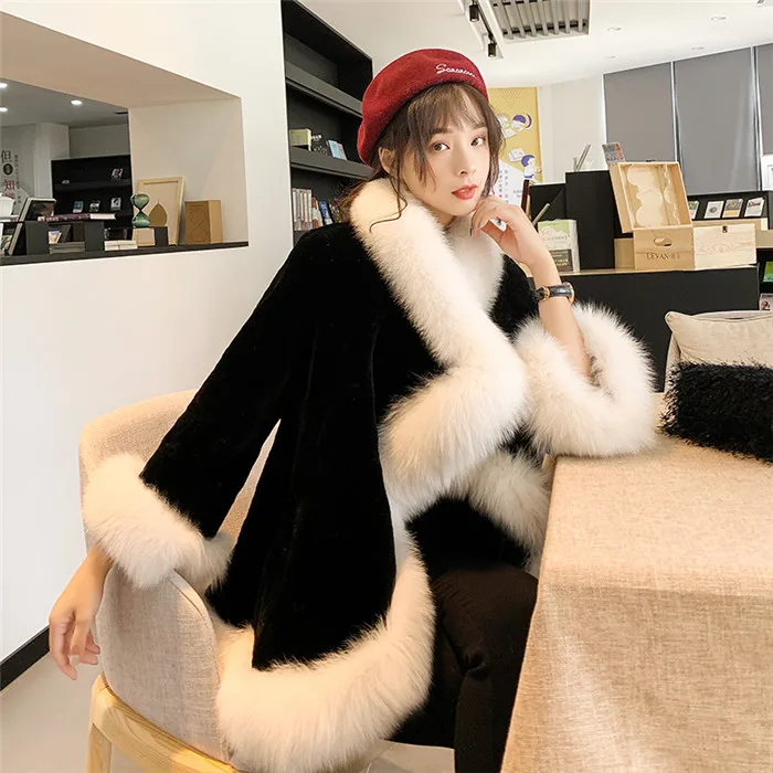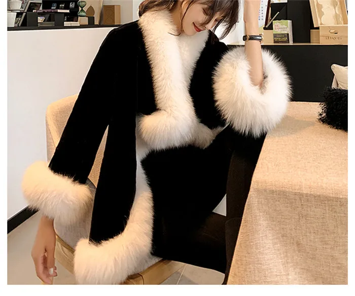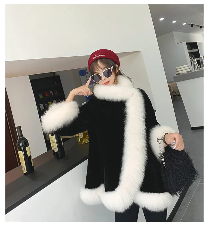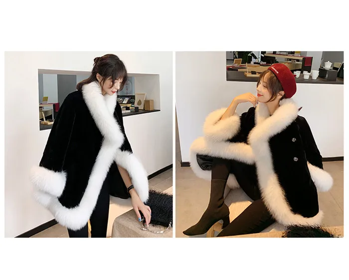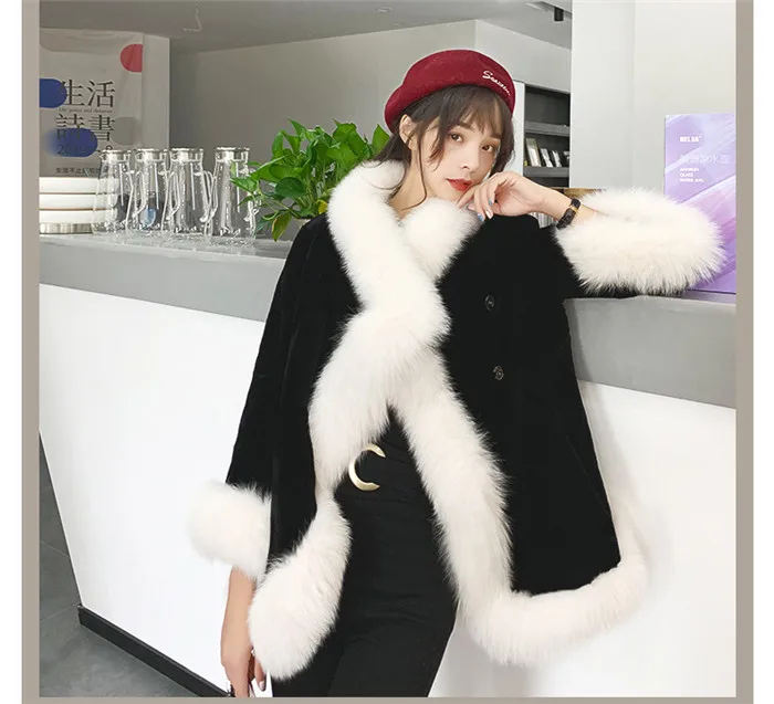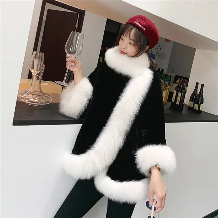 Женская куртка, пальто из искусственного меха норки, зимняя шаль большого размера, теплый плащ, Толстая черная модная Новая женская теплая куртка OK408