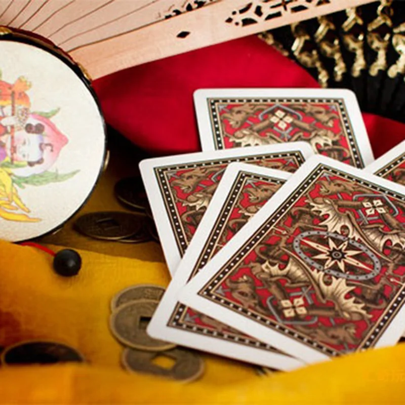Описание продукта: Каждая задняя панель Золотого Дракона имеет замысловатый, зеркальный дизайн дракона с темно-красным, золотым и серебряным цветами. Карты суда получили аналогичное лечение и имеют золотые акценты вместо обычного желтого. Для эхо карт, красные костюмы и пипсы более глубокий оттенок красного, чем в стандартной палубе. Задняя панель Золотого Дракона содержит Оригинальное изображение на задней части каждой карты и шайбы. Сделано в США, игральная карта компании премиум-класса с качественной отделкой. Посылка включает в себя: 1 x велосипедная Золотая палуба дракона
