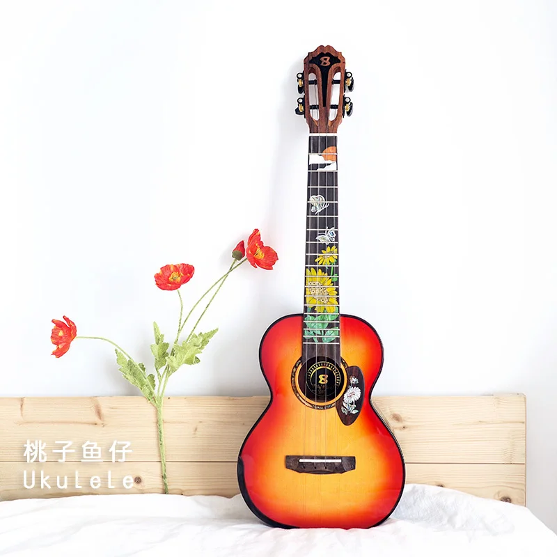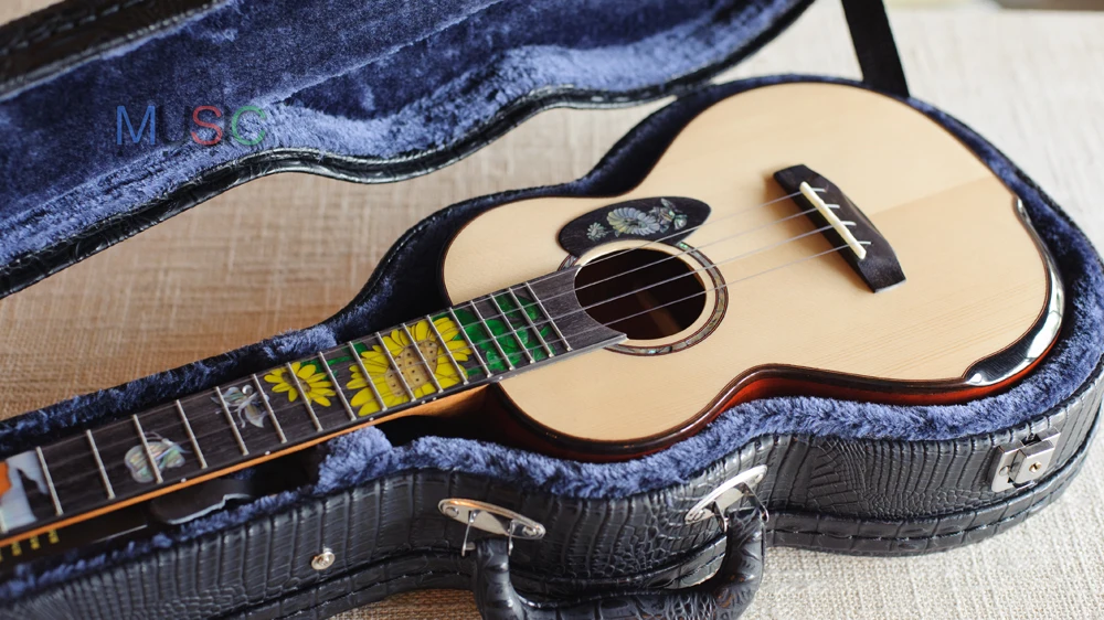 Модель: BS-80T Название бренда: яркое солнце Размер: tenor Верх: однотонная ель Задняя и боковая сторона: твердая древесина koa Гриф: розовое дерево Шея: красное дерево Строка: Daddario EJ87 Отделка: глянцевая Цена, включая hardcase