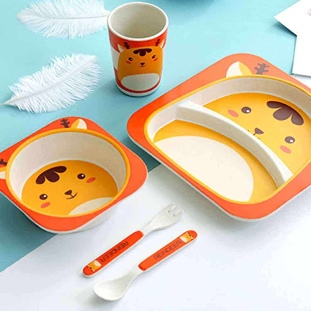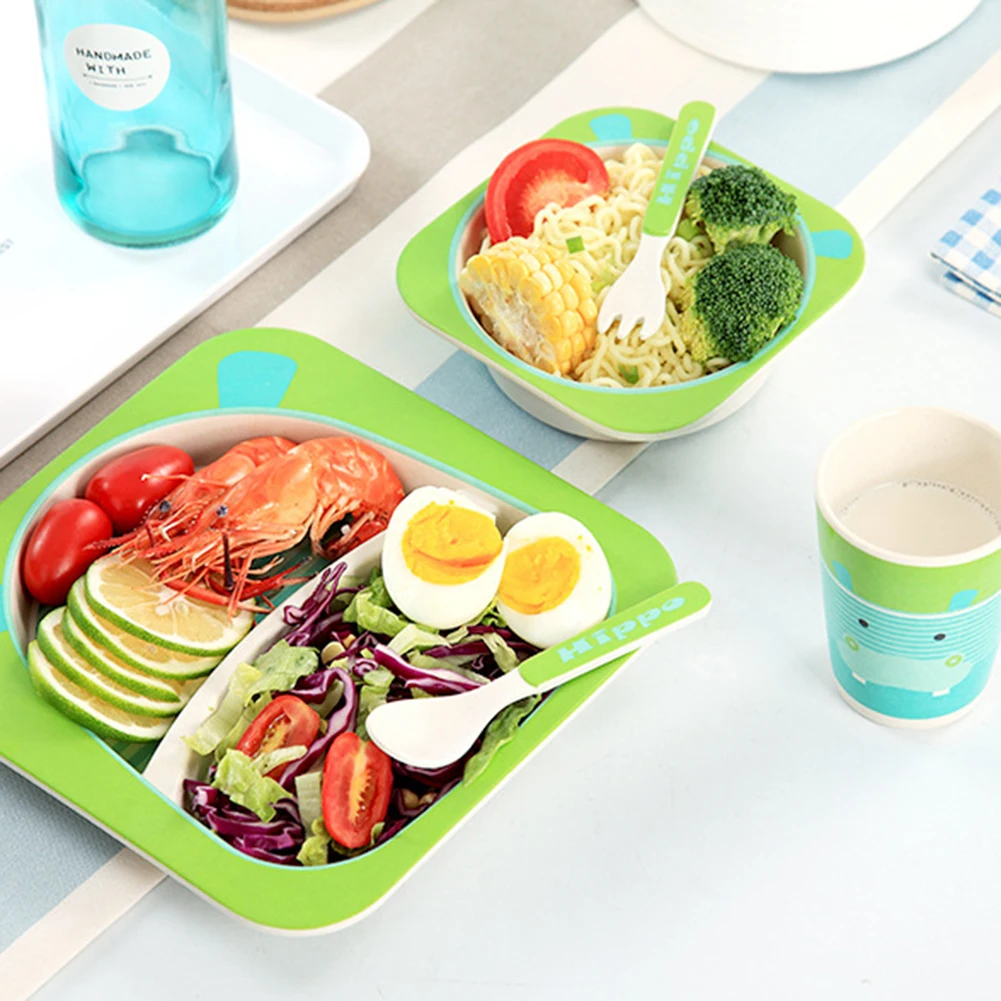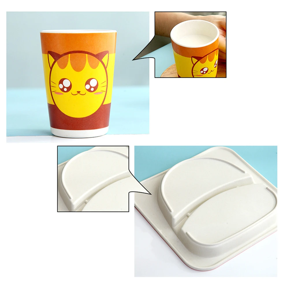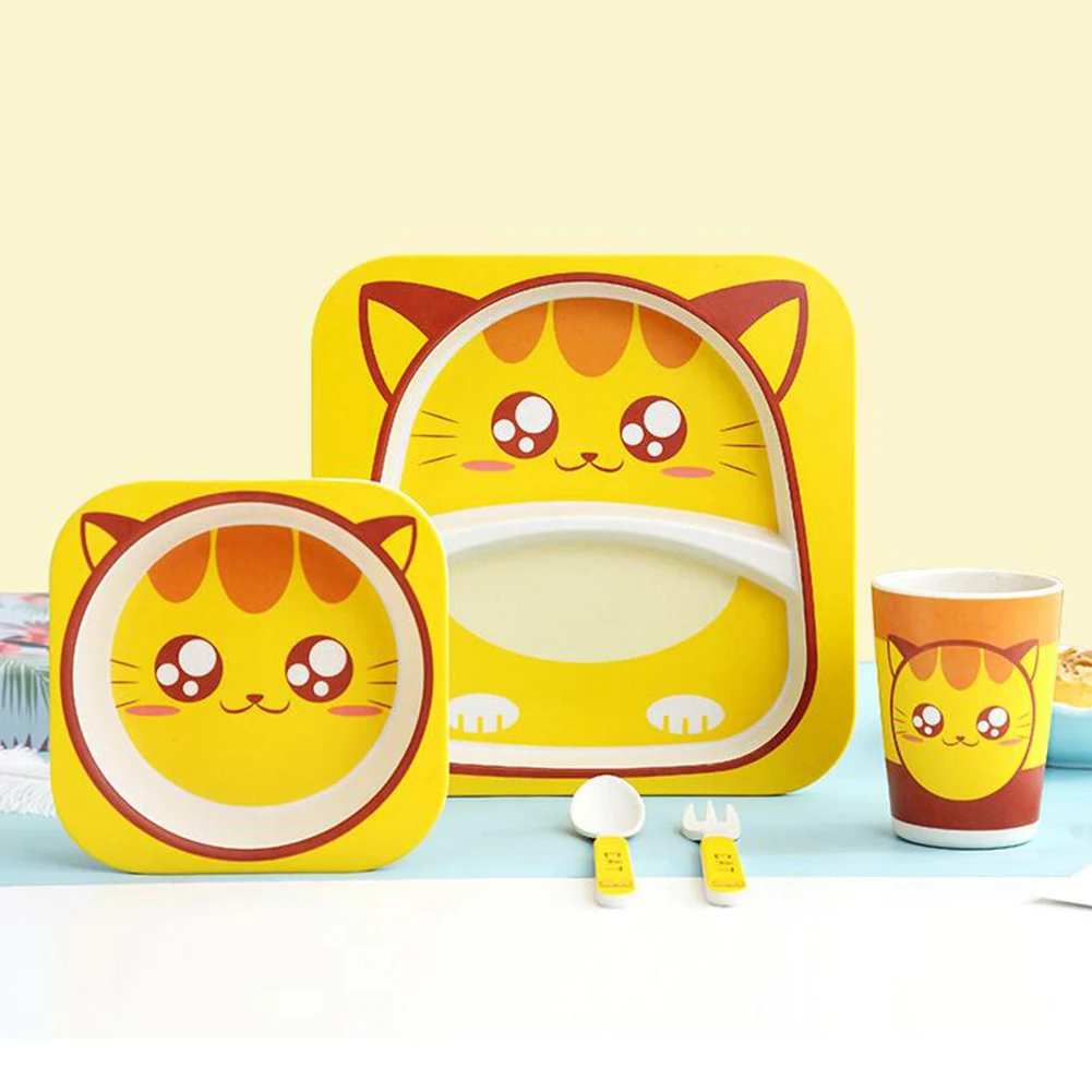 5 шт./компл. милые животные Кошка Бамбуковое волокно чаша для малыша ложка тарелка вилка Посуда