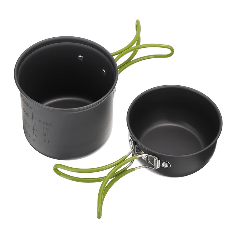 Эта посуда подходит для кемпинга, пеших прогулок, походов, готовности к чрезвычайным ситуациям или в качестве набора для выживания. Когда набор повара установлен вместе (с крышкой на кастрюле) для путешествий и хранения, в нем есть место для переноски печи, спичек, приправ, соли, перца, губка и множество других вещей для снижения общего расхода пространства.