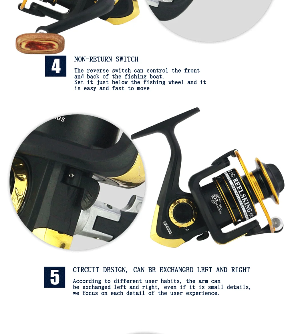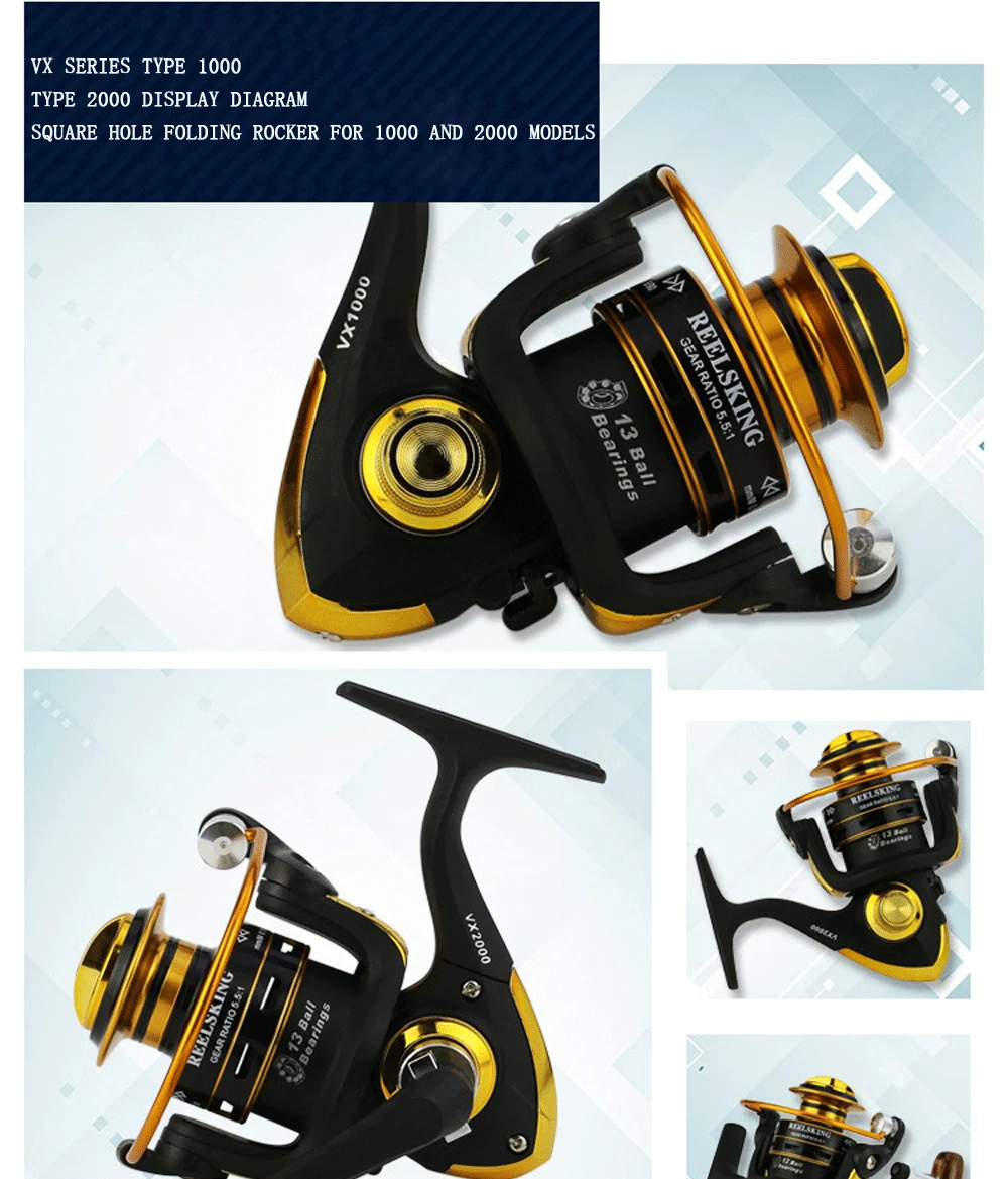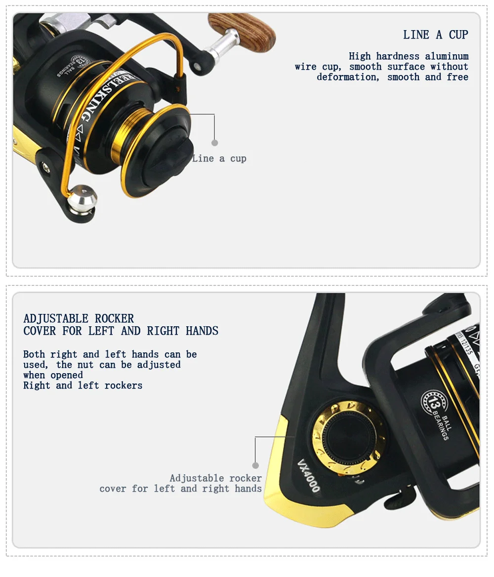 Конфигурация VX: линия чашки металлическая Толстая линия конфигурации половина-металлический складной коромысло, рокер Ручка складной Металл, рокер пластик, рокер может быть заменен влево и вправо, деревянная ручка. Многоступенчатая структура. Номер подшипника рыболовного колеса: 13 этот раздел рыболовного судна, 1000-2500 модель для трубы рекомендуется с скальной удочкой, мачтой, прямой Шан-роуд. Модель 3000-4000-рыболовное судно среднего размера. Модель 5000-7000 представляет собой крупное рыболовное судно. Рекомендуется носить с морской полюс