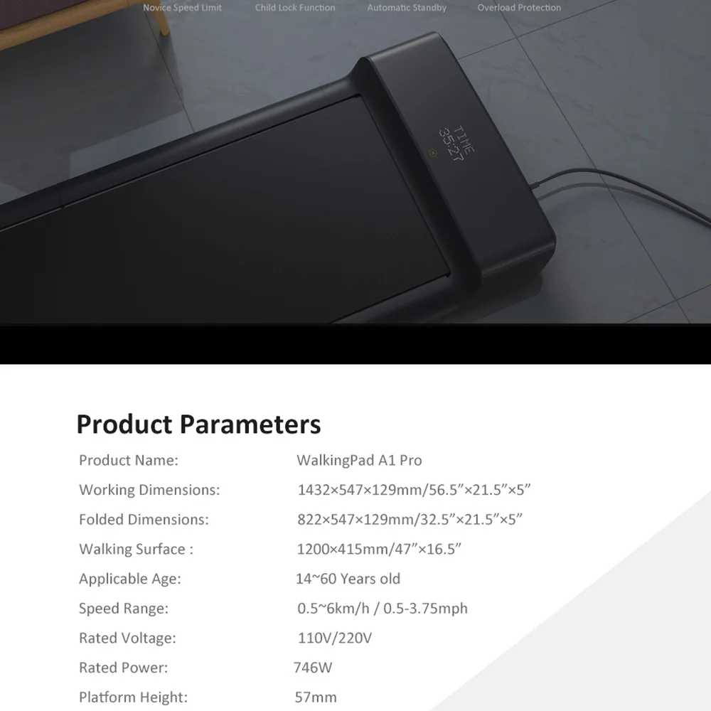 Рабочий размер: 1432x547x129мм Размер в сложенном виде: 822x547x129 Прогулочная Поверхность: 1200x415 мм Подходящий возраст: 14-16 лет Диапазон скорости: 0,5-6 км/ч Номинальное напряжение: 110 В/220 В Номинальная мощность: 746 Вт Высота платформы: 57 мм Максимальная нагрузка: 105 кг Вес нетто: 28 кг Общий вес: 31 кг Спортивный режим: автоматический, ручной 1 х Коврик для прогулок 1 х шнур питания 1 пульт дистанционного управления 1 x ремешок с пультом дистанционного управления 1 х гаечный ключ 1 x Силиконовое масло 1 х Руководство * Меры предосторожности: После получения товара, вы можете подать заявку на возврат средств, не влияя на вторичные продажи.