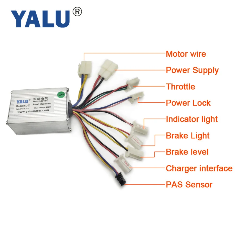 Контроллер ограничения скорости, 24 В, 36 В, 250 Вт, 350 Вт, с интерфейсом датчика PAS, используется для щеточного двигателя постоянного тока, подходит для переустановки аксессуаров для электродвигателя скутера
