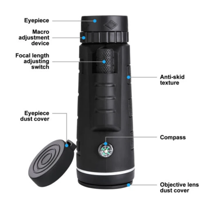 1. Двойной фокус HD в монокуляре zoom, более Четкий просмотр животных или других вещей, и вы можете слегка отрегулировать ручку фокуса в соответствии с вашим зрением.