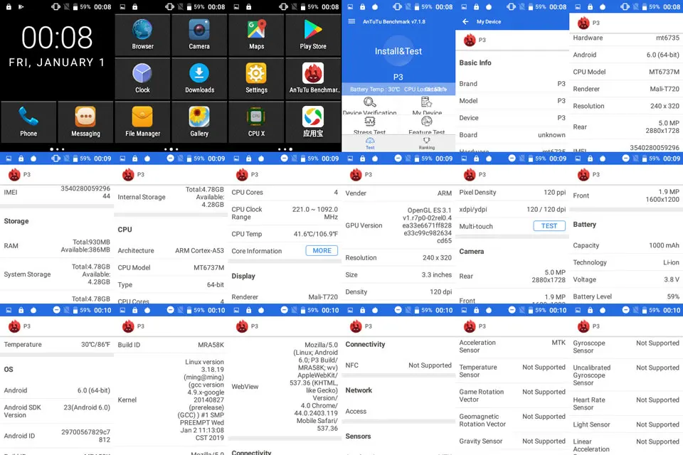 Процессор MT6737M Cortex A53 quad core, 1,1 GHz; GPU: Mali-T720