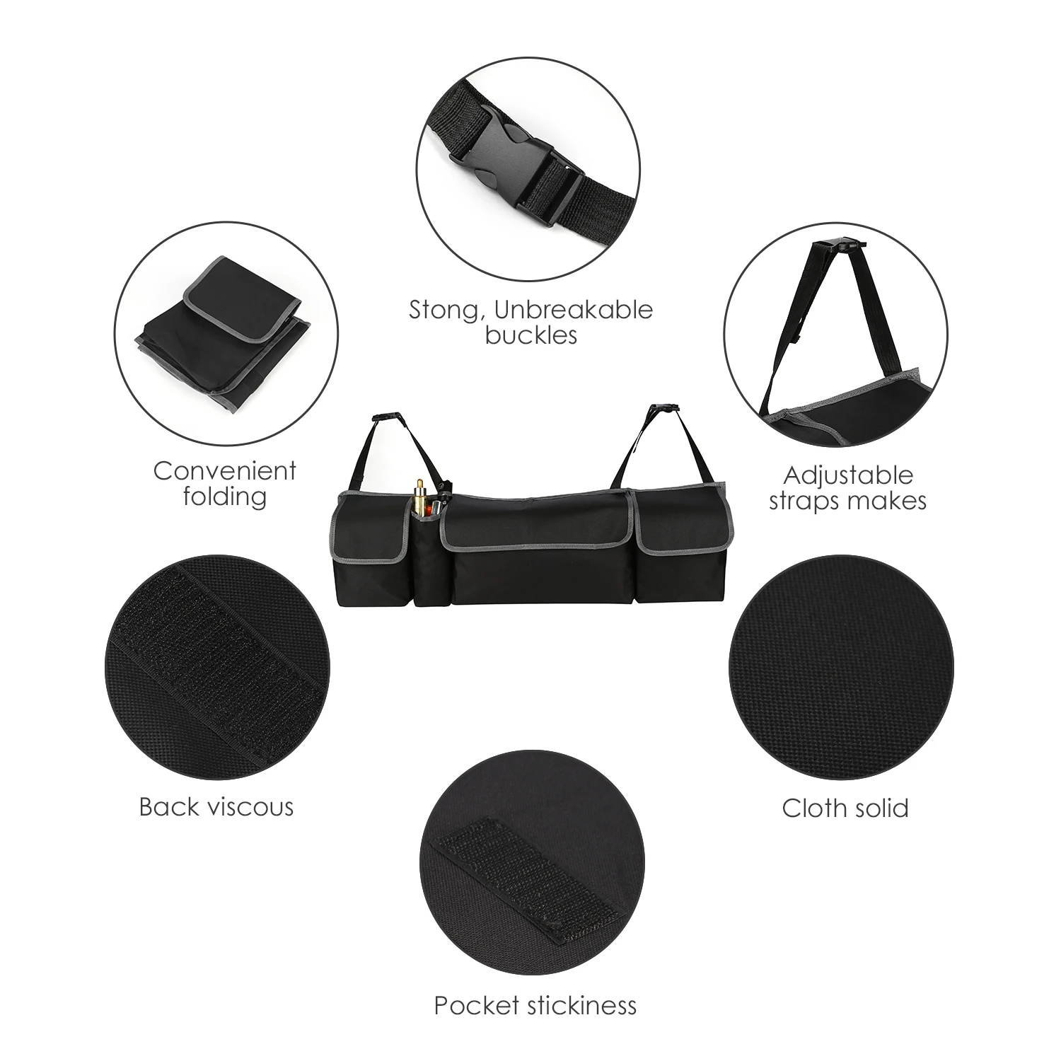 Органайзер для багажника на заднем сидении предназначен для хранения всех ваших ежедневных предметов первой необходимости и продуктов в вашем транспортном средстве и для хранения вашего багажника. Это помогает сэкономить много места для тех, у кого много гаджетов в багажнике, и экономит много времени для тех, у кого нет времени, чтобы очистить багажник, также помогает освободить руки мам, у которых есть дети и которым нравится хранить игрушки в багажнике. Если вы ищете что-то для решения проблемы с багажником, органайзер для багажника-лучший выбор для вас.