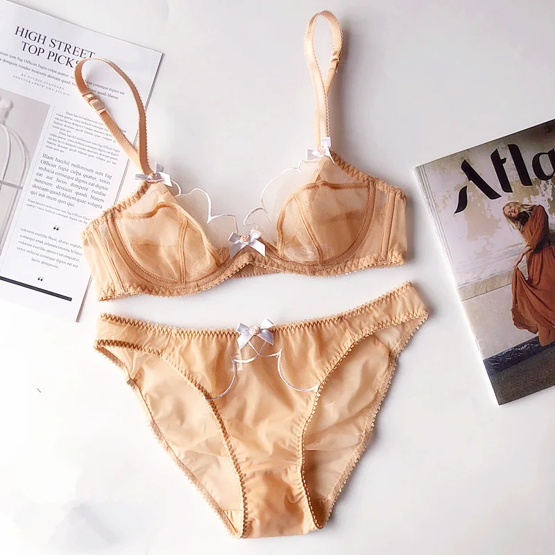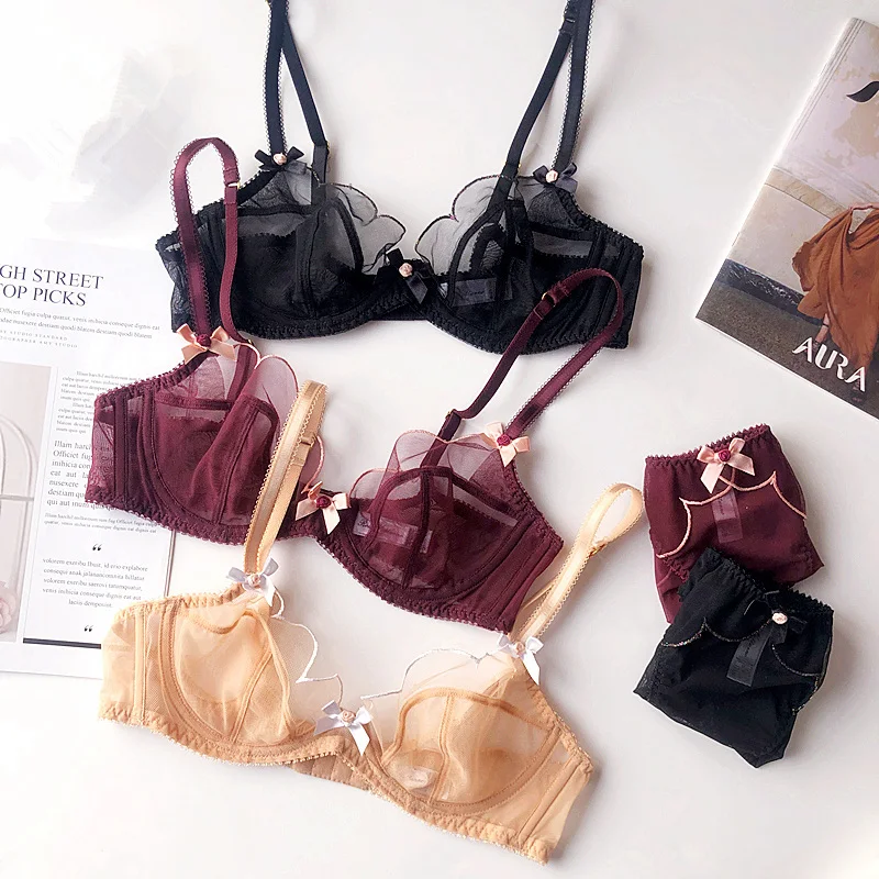 Сексуальный ультратонкий кружевной бюстгальтер с лепестками, комплект женского нижнего белья на косточках с глубоким v-образным вырезом, прозрачные комплекты нижнего белья