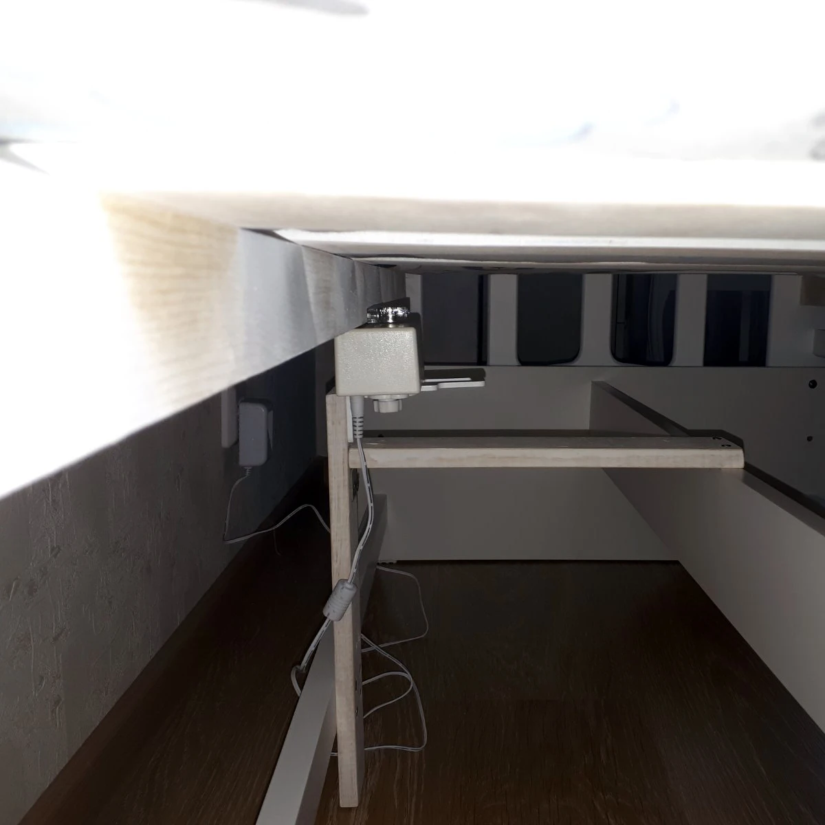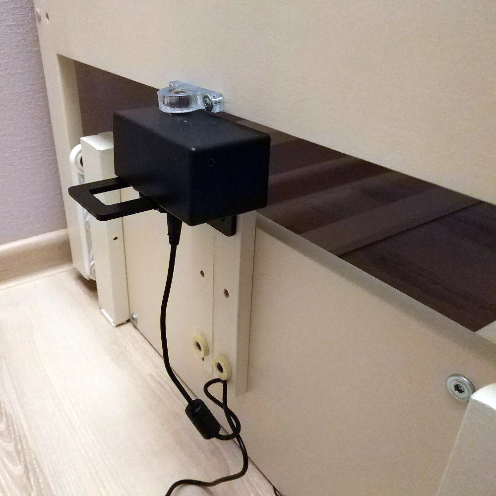 The installation of the device on the crib is to fix the magnet on the movable part and the drive unit-on the fixed part of the crib so that in the position of the balance the magnet the The pendulum mechanism of the crib swing should work without increased friction. You can read more about the installation in the instructions.