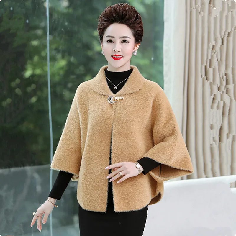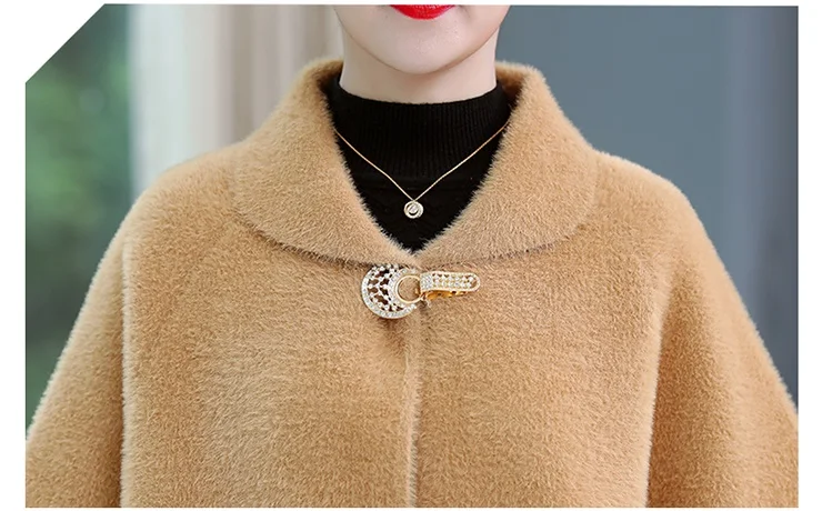 Шерстяное пальто UHYTGF из качественного норкового кашемира на осень и зиму, короткий кардиган с рукавами летучая мышь, однотонная Свободная куртка, размера плюс пальто 814