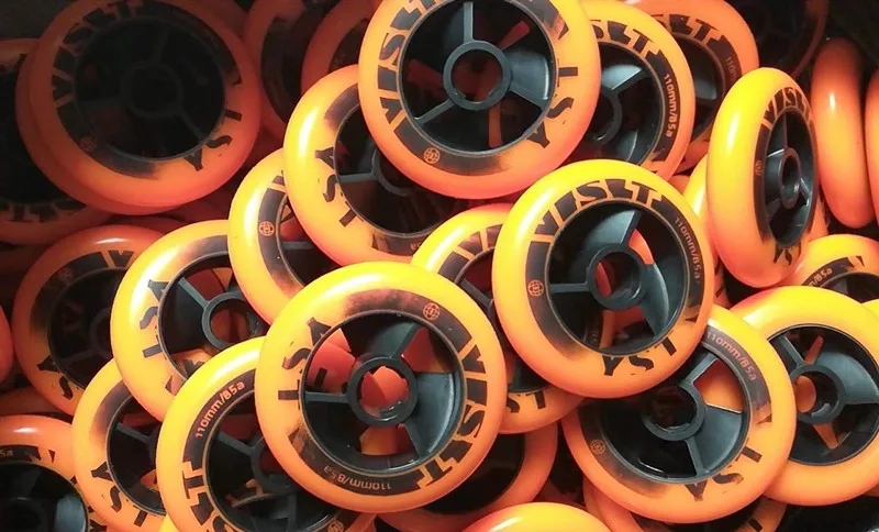 Это оранжевое/зеленое колесо для скоростного катания 110 мм обладает хорошей эластичностью и твердостью 85а; Ступица очень крутая в форме веера; Это размер 110 мм * 24 мм, с использованием стандартных подшипников 608; Вы можете купить 2/6/8 колес в партии.