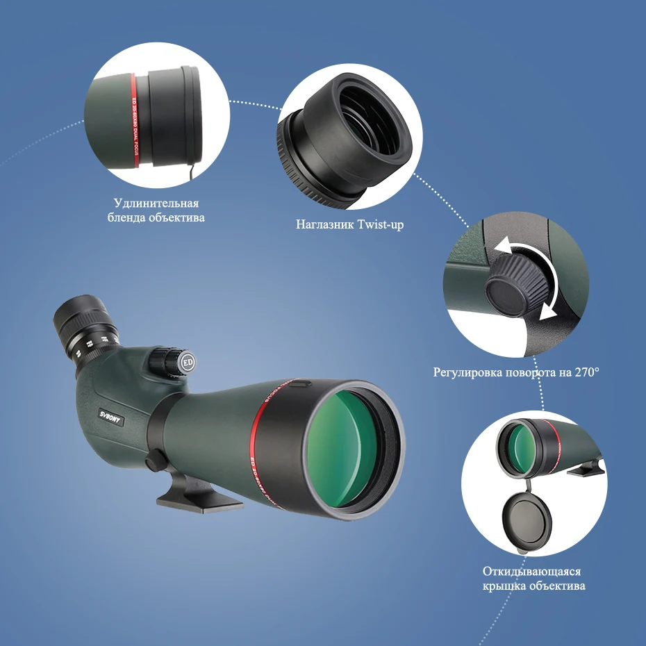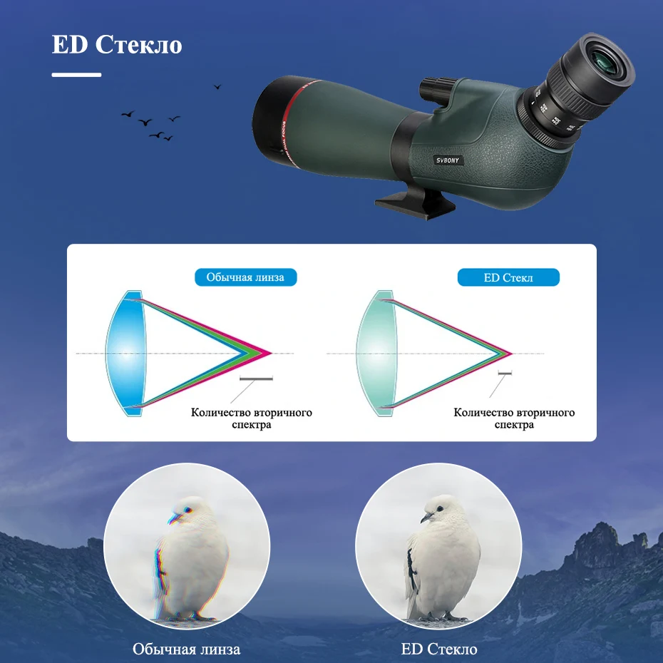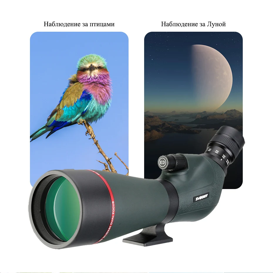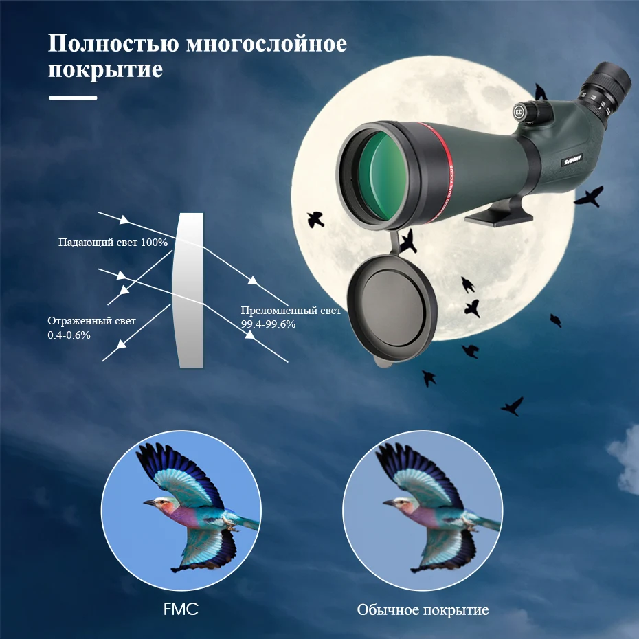 4.80 мм и угол обзора 45 °. Идеально подходит для наблюдения за природой и просмотра на большие расстояния.
